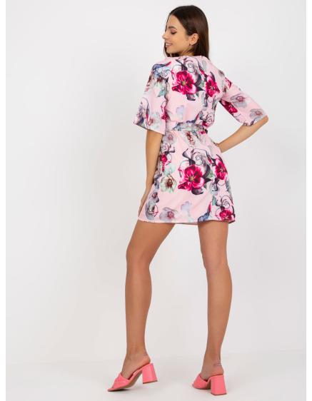 Dámske krátke koktailové šaty ORIANNE svetloružové s opaskom