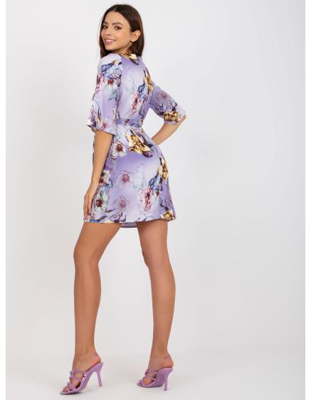 Dámske kvetinové mini koktailové šaty JADYN fialové