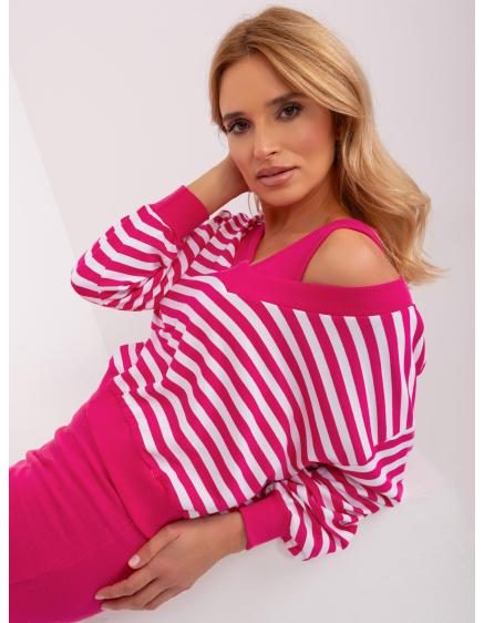 Fuchsiová a biela základná súprava s pruhovanou blúzou