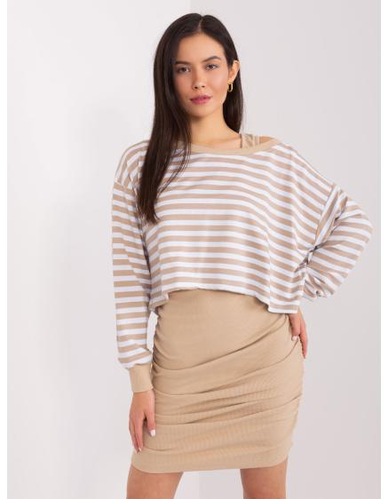 Bežovo-biela základná súprava s pruhovanou blúzou
