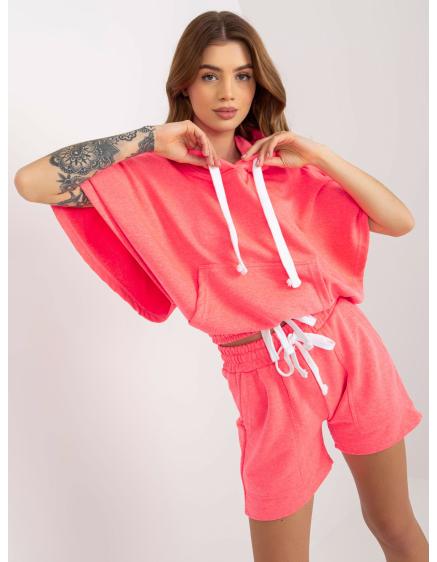 Fluorescenčná ružová dámska tepláková súprava Liana s kapucňou
