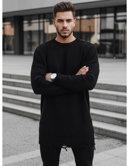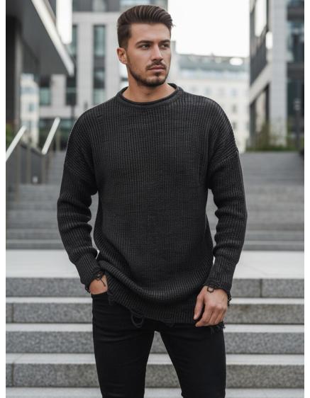 Pánsky pletený sveter RELAXED FIT so vzormi - tmavomodrý V1