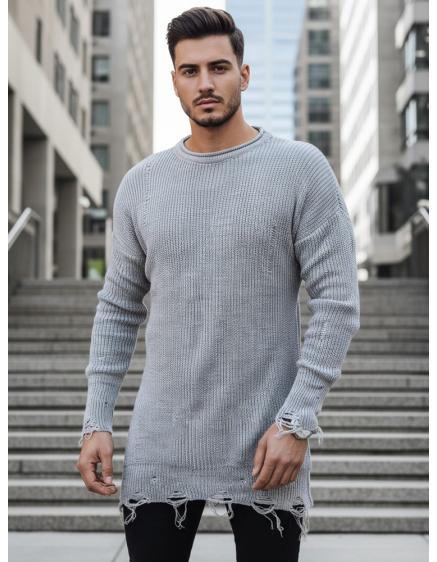 Pánsky sveter s okrúhlym výstrihom, sivý a tmavomodrý