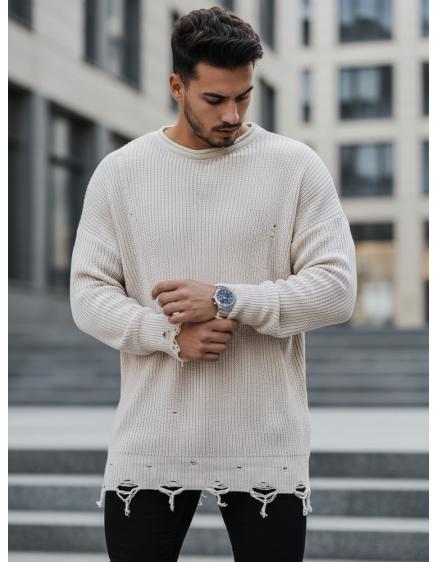 Pánsky melanžový štruktúrovaný pletený sveter - pieskový V3