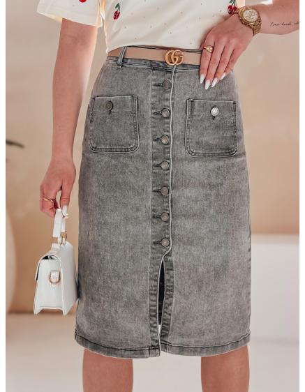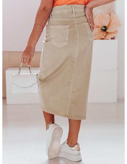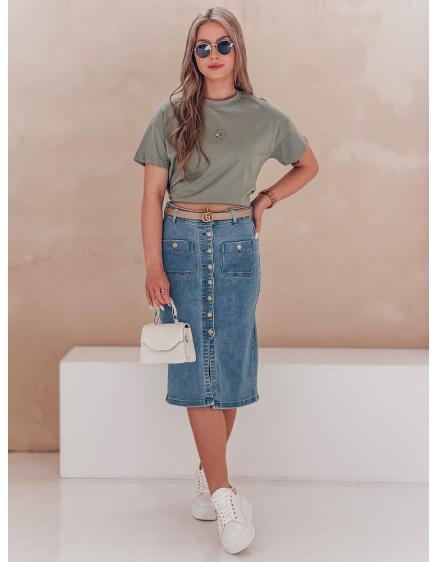 Džínsová midi sukňa s rozparkom MIDIWAY zelená