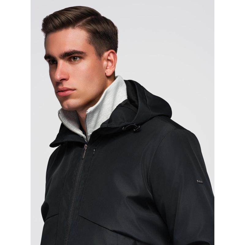 Pánska ľahká bunda so sieťovanou podšívkou a kapucňou – čierna V4 C640
