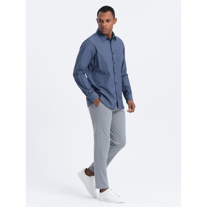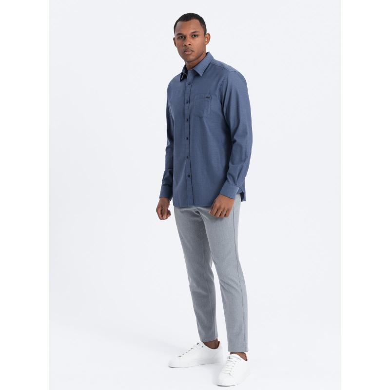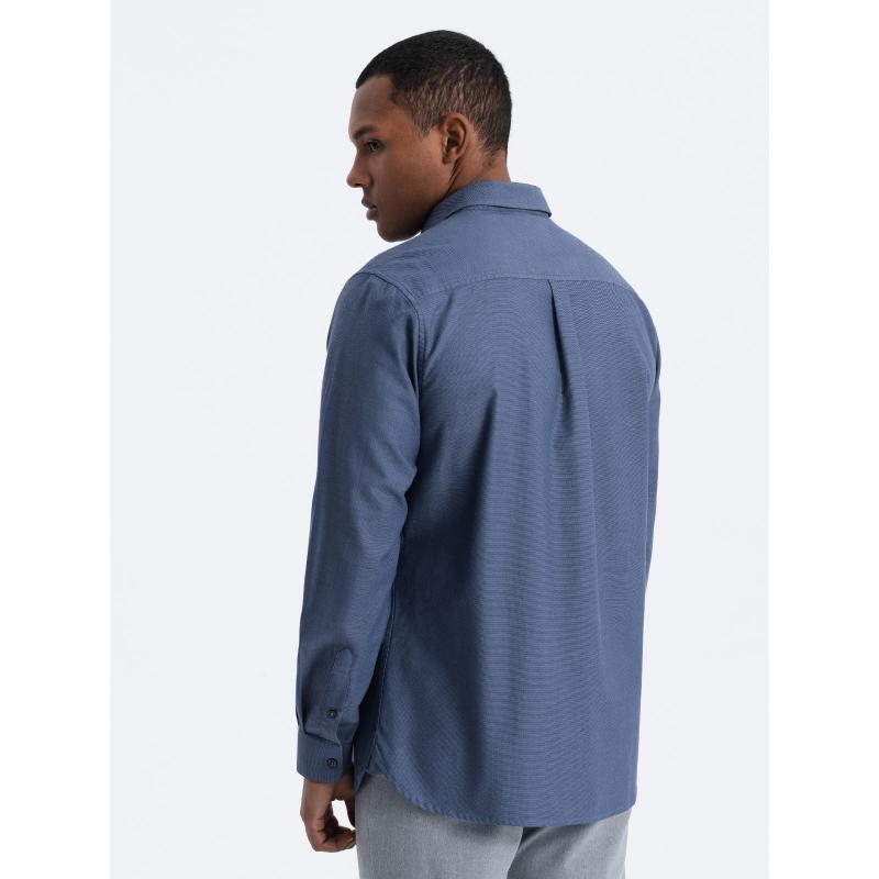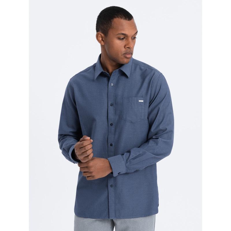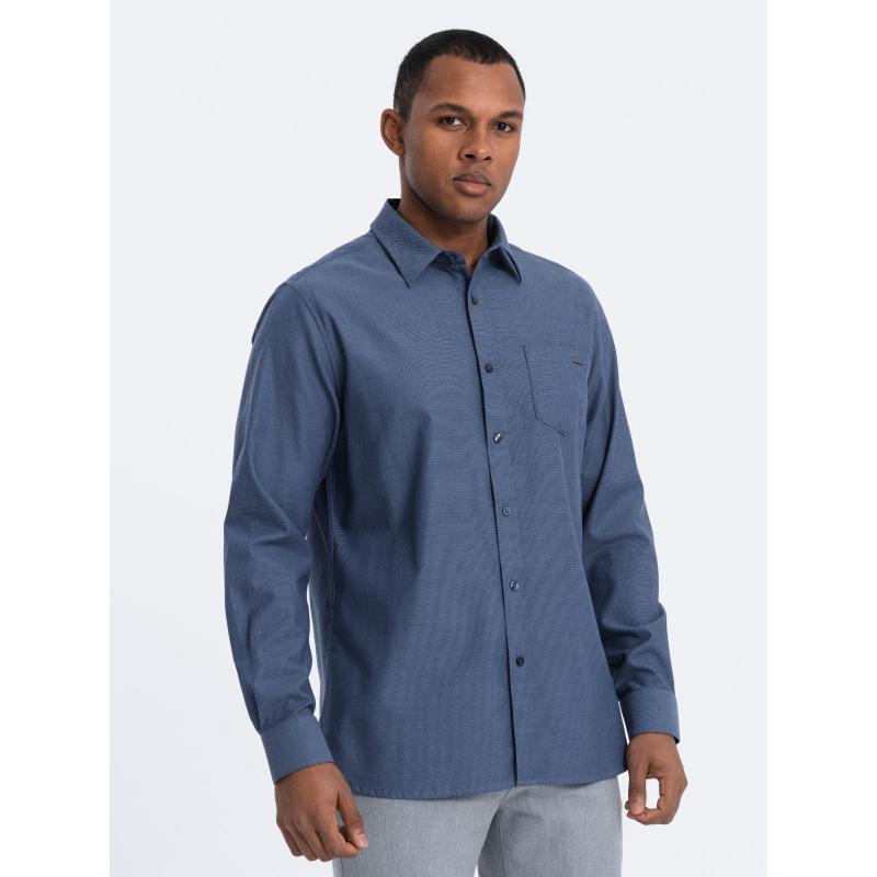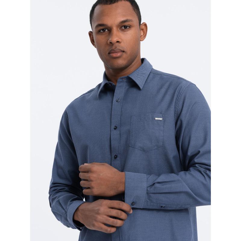Viete, ako vyzerá dobrý vkus v 3D? Ak nie, máte jedinečnú príležitosť. Stačí si zaobstarať tento kúsok a žmurknúť do zrkadla. Pretože Pánska bavlnená košeľa s vreckom REGULAR FIT V3 OM-SHCS-0147 modrá prináša
