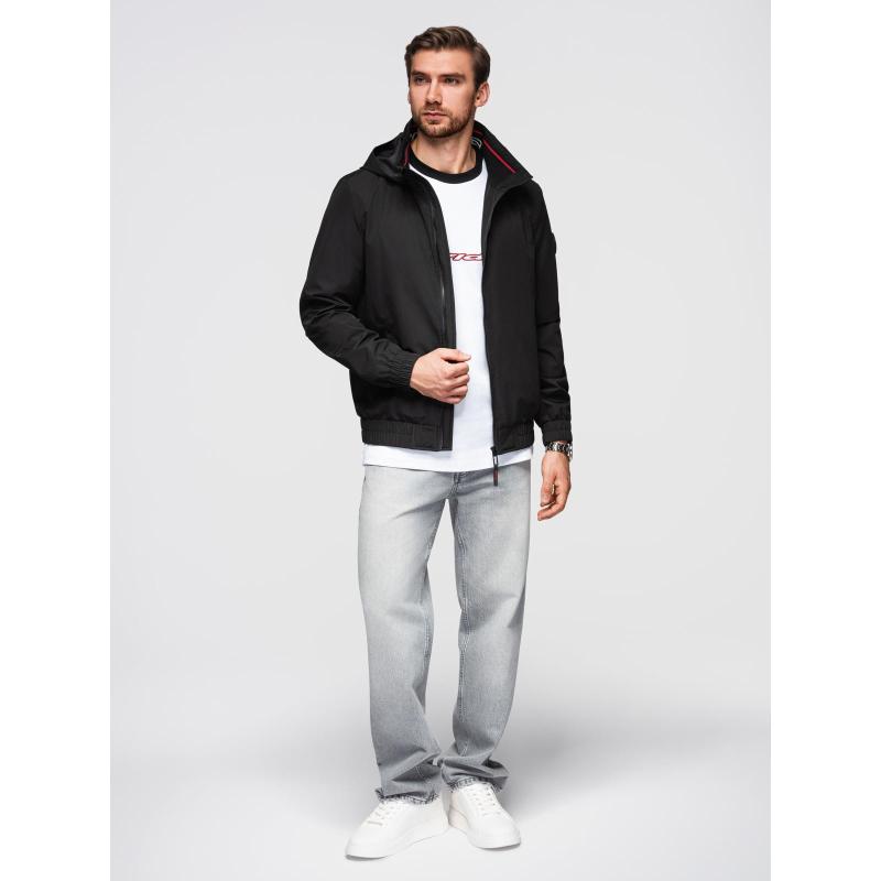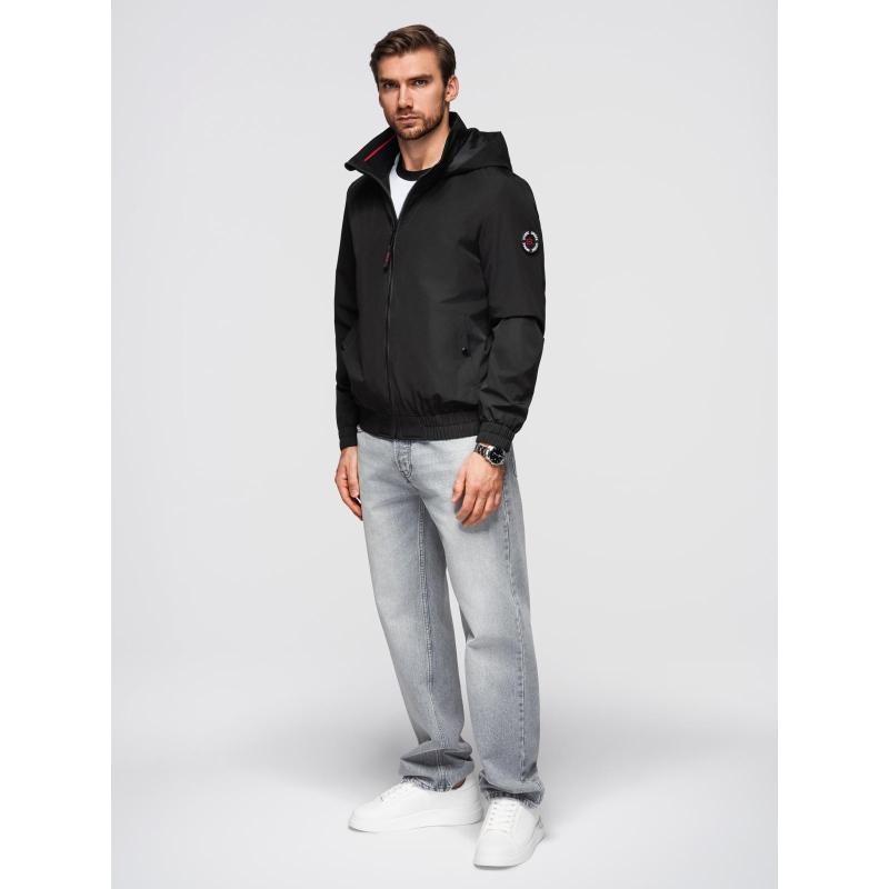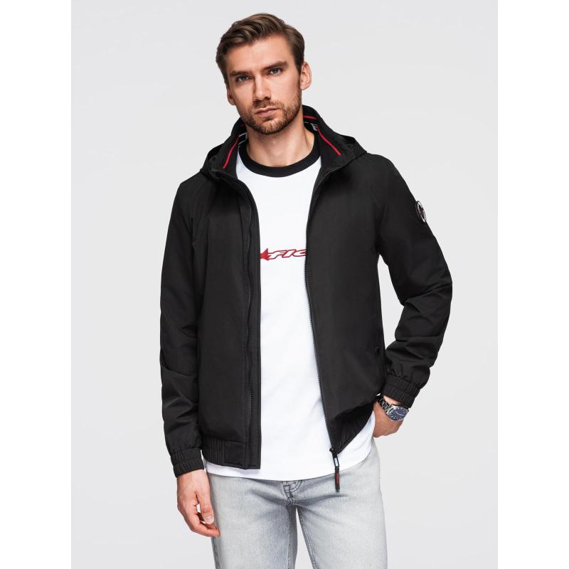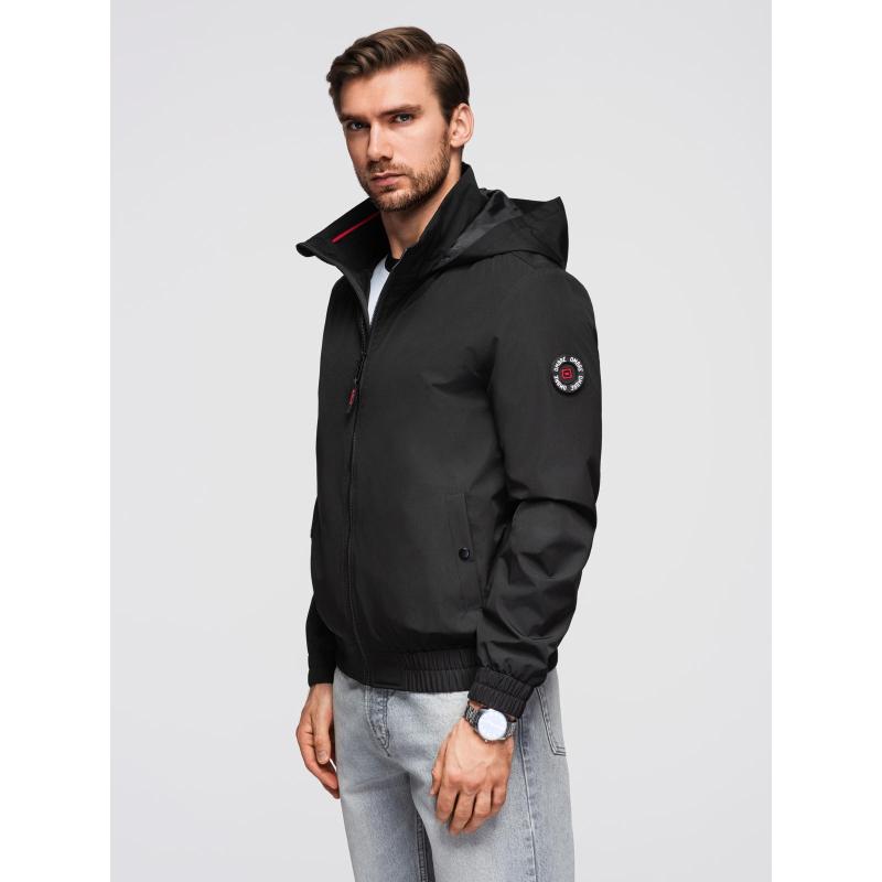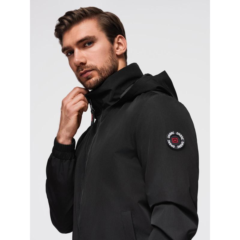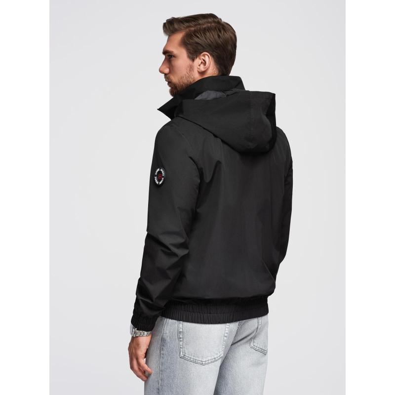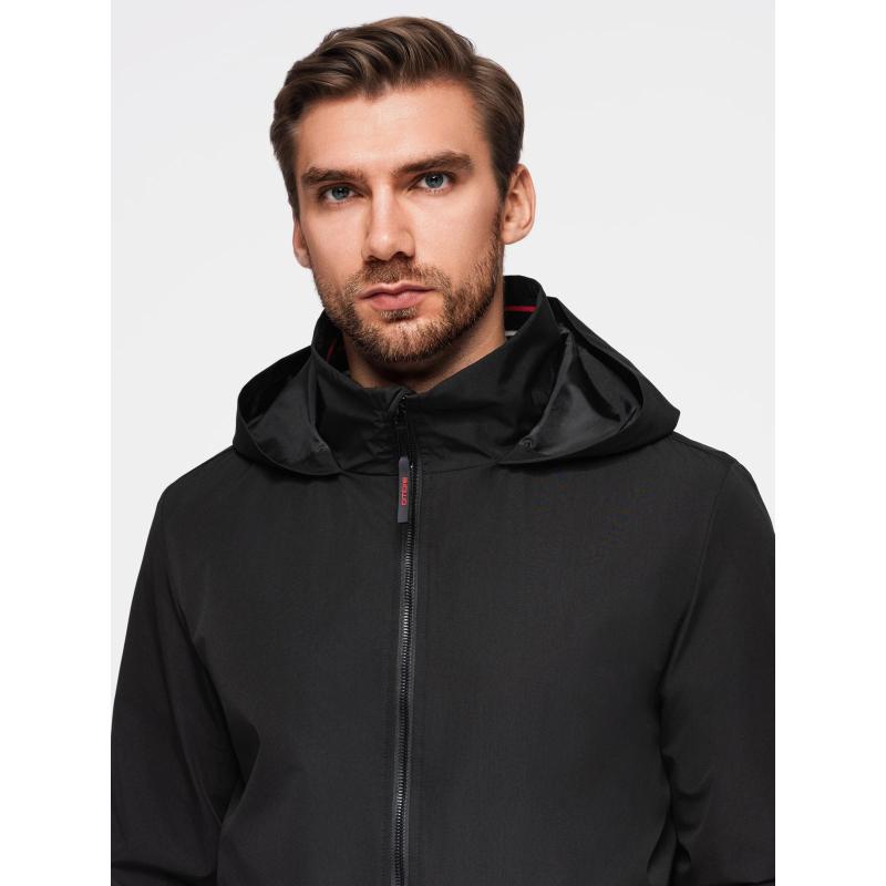 Pánska bunda s kapucňou a vysokým golierom – čierna V1 OM-JANP-0222