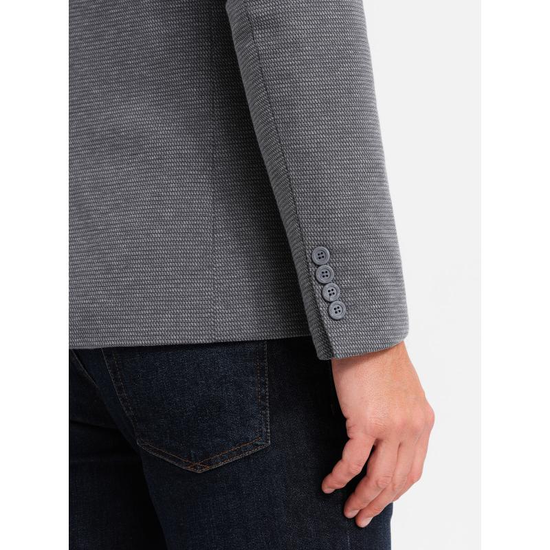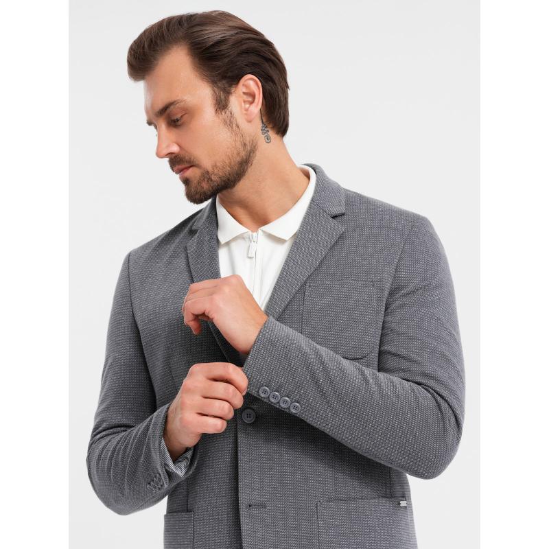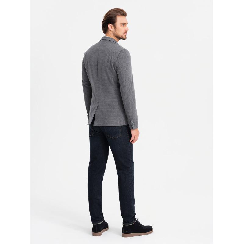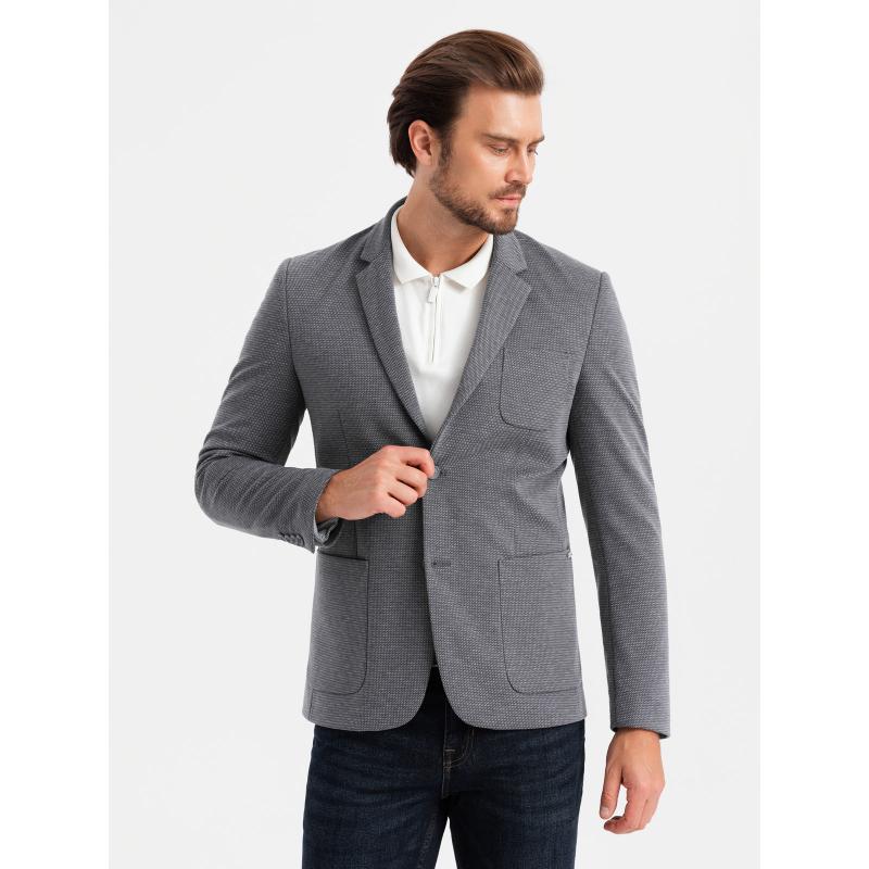 Pánska bunda s kapucňou a vysokým golierom - tmavomodrá V3