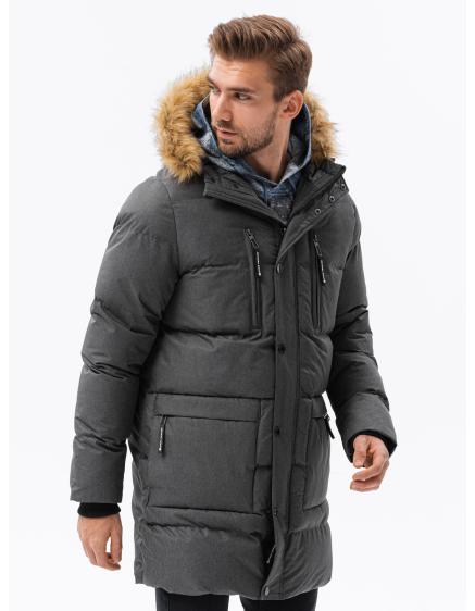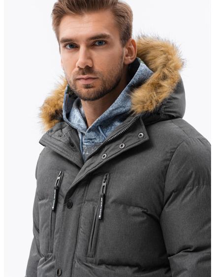 Pánska bunda so saténovým lemovaním grafitová