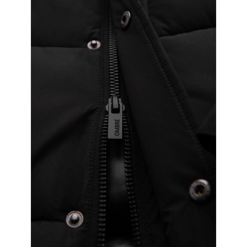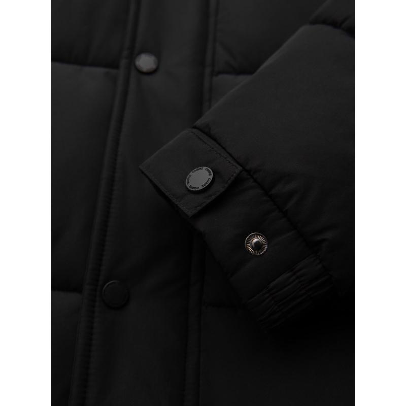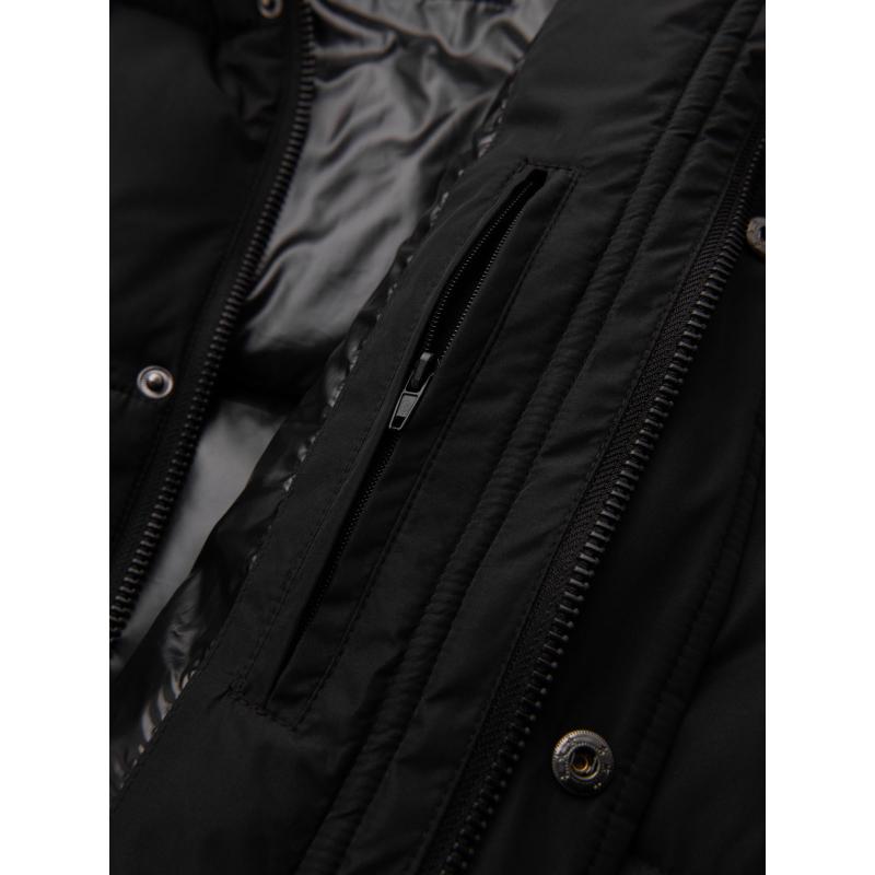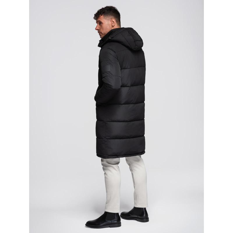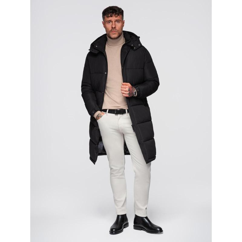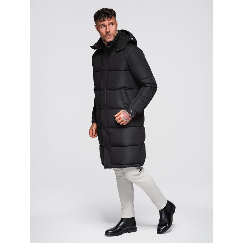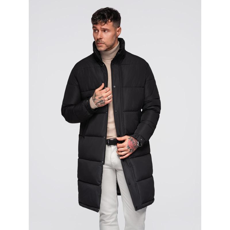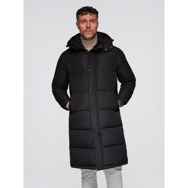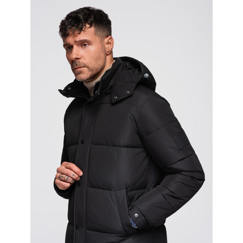 Pánska dlhá prešívaná zimná bunda s kapucňou – čierna V1 OM-JALJ-0309