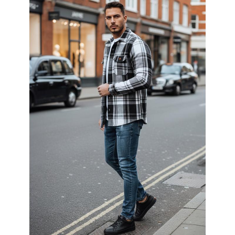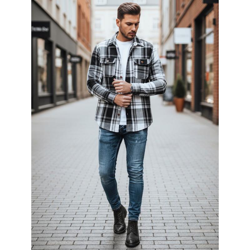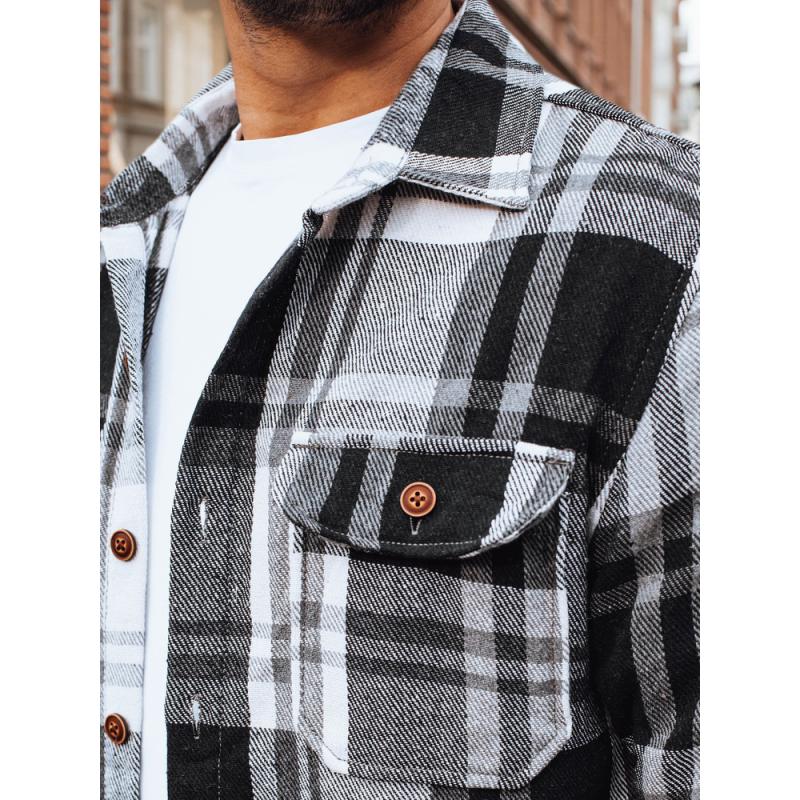 Pánska flanelová košeľa s čierno-bielym kockovaným vzorom
