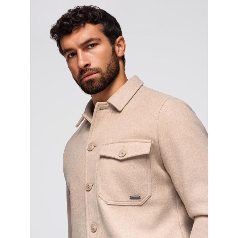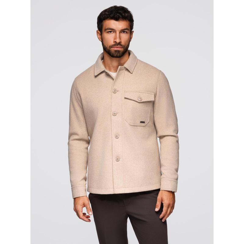 Pánska košeľová bunda – béžová V1 OM-JANP-0291