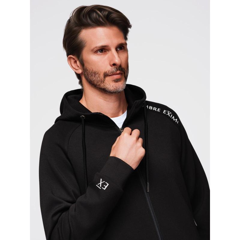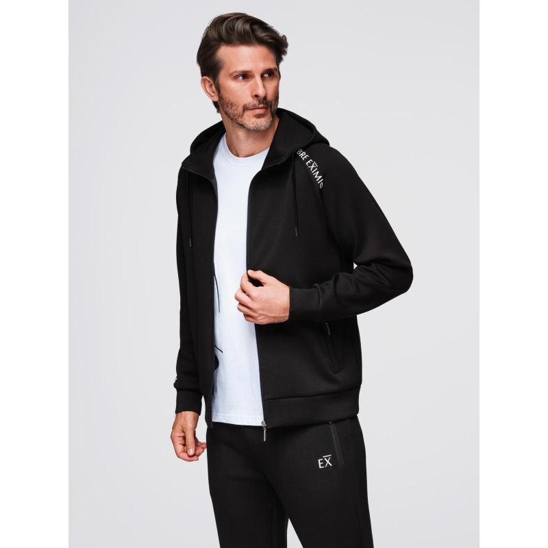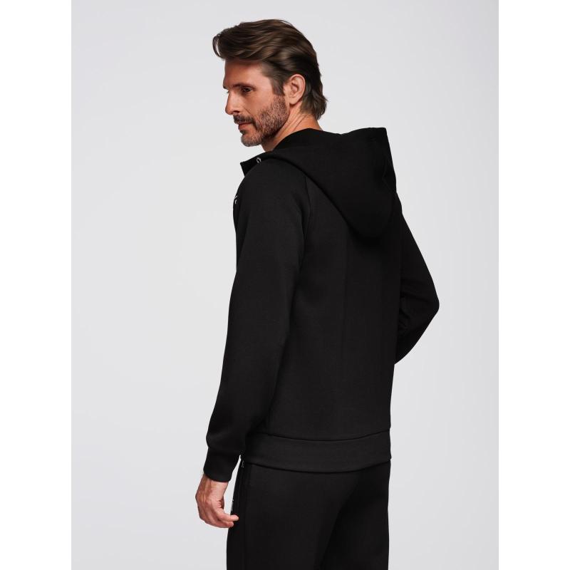 Pánska mikina bez gombíkov so stojatým golierom a kapucňou – čierna V1 OM-SSZP-0216