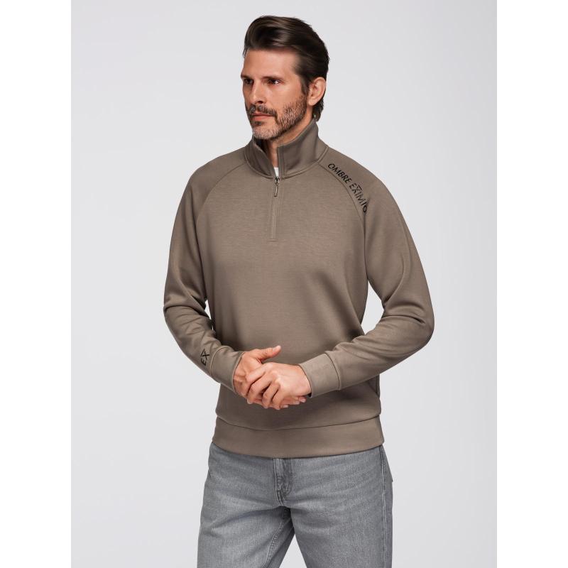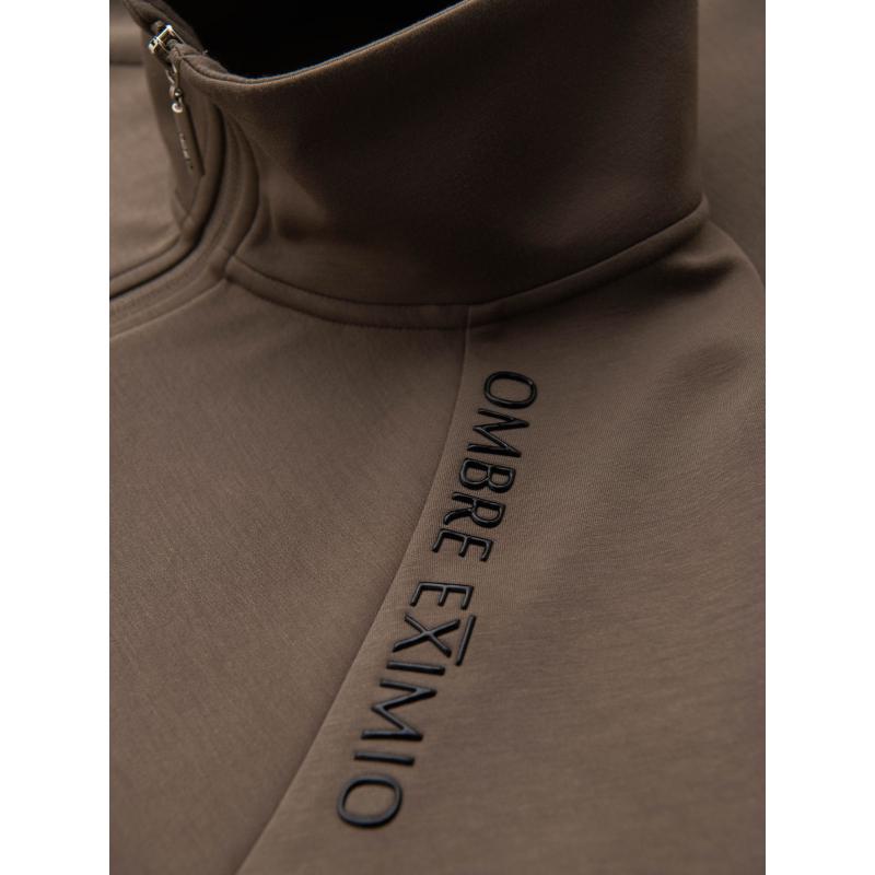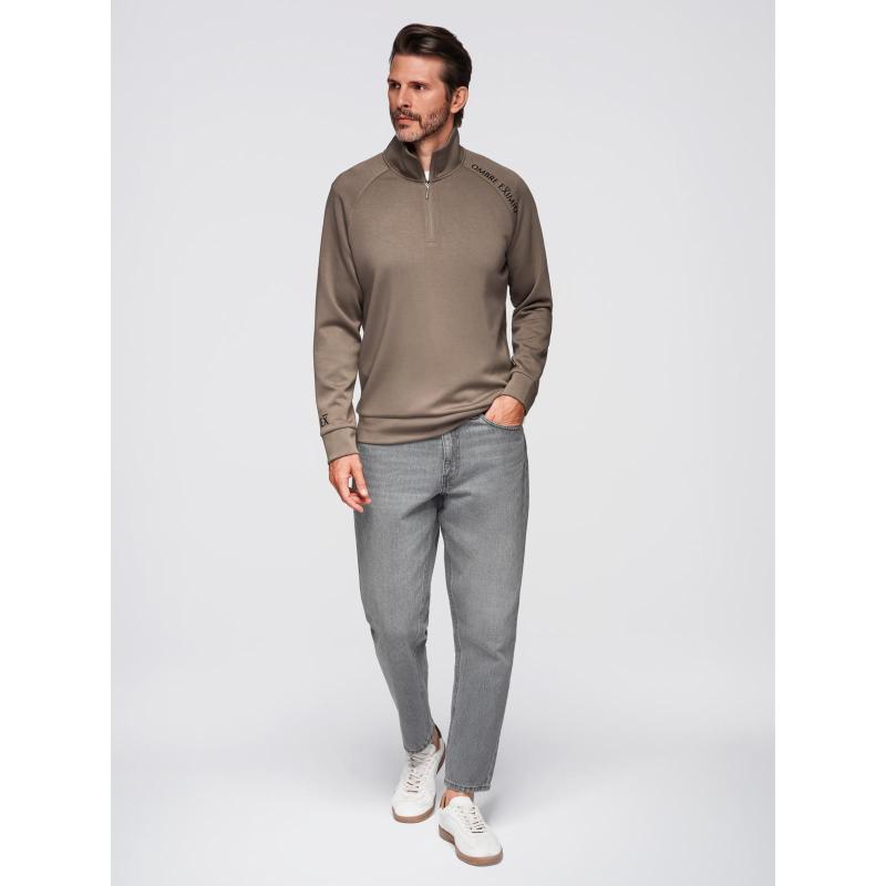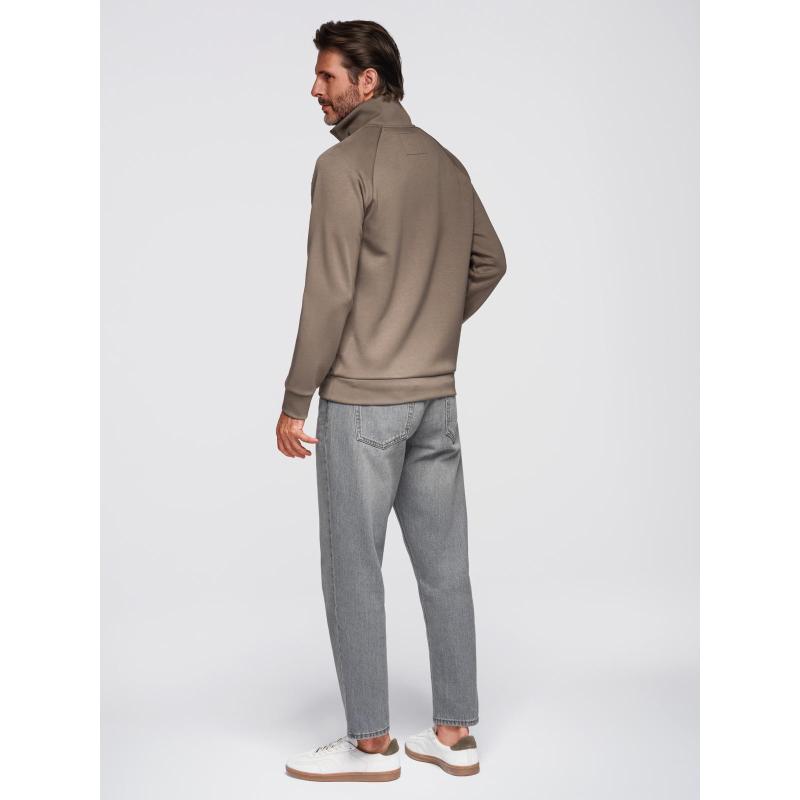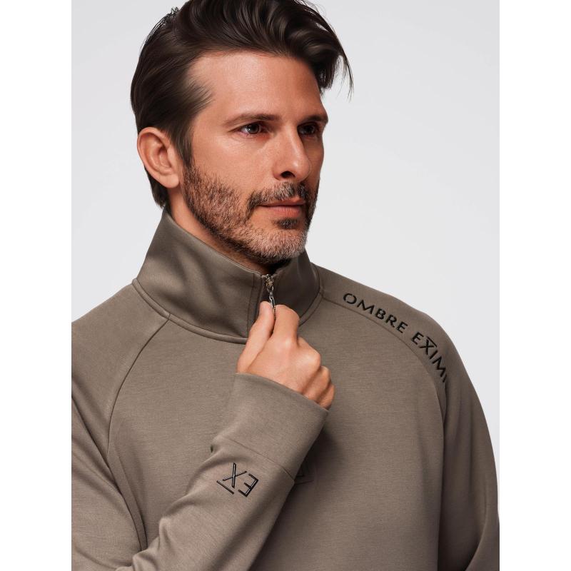Pánska mikina s kontrastným potlačou a vysokým golierom na zips – šedo-hnedá V3 OM-SSZP-0211