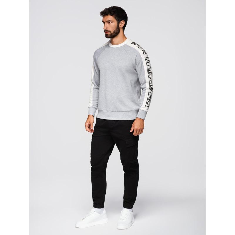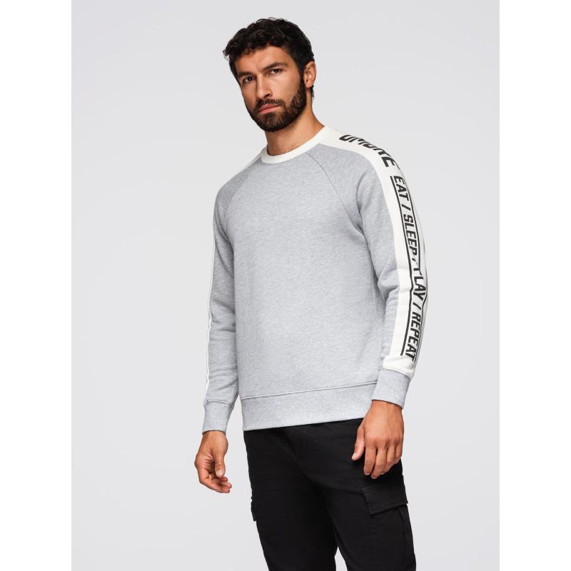 Pánska mikina s kontrastnými pruhmi a raglánovými rukávmi – sivá melírovaná V2 OM-SSNZ-0200