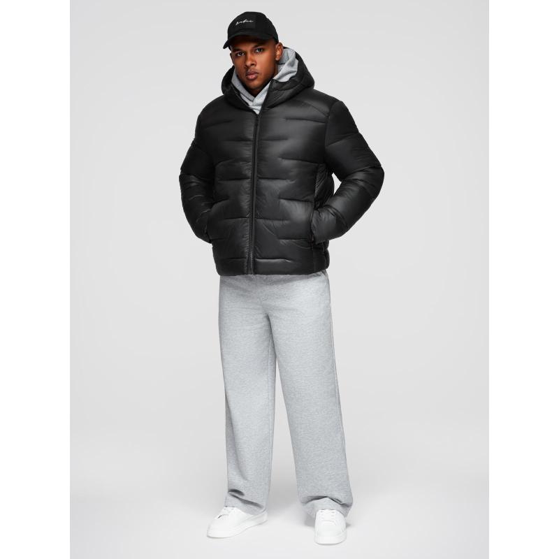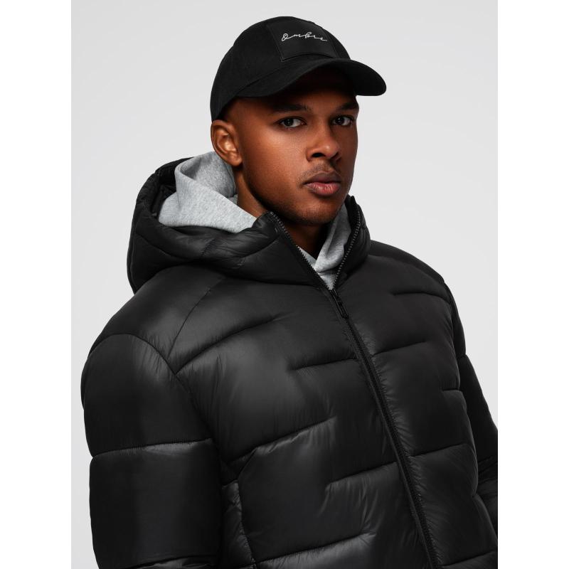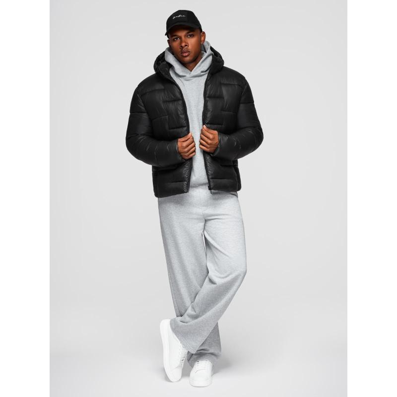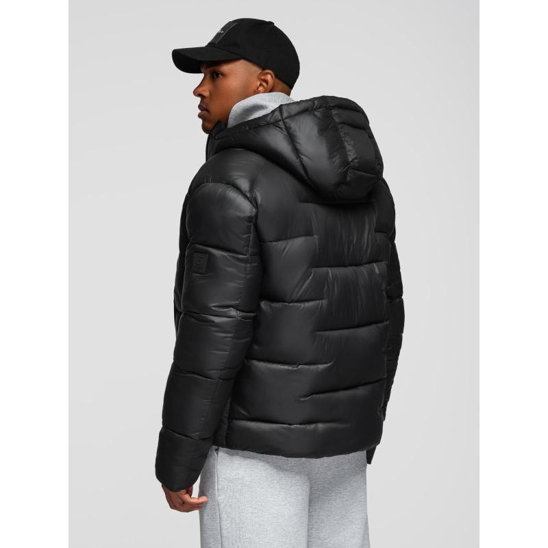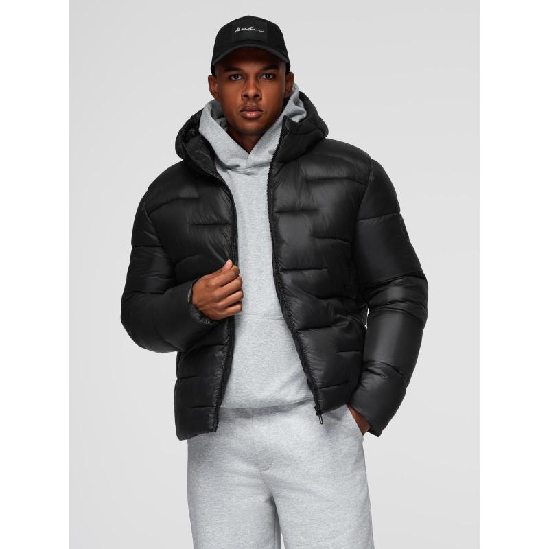 Pánska prešívaná bunda s kapucňou – čierna V1 OM-JAHP-0235