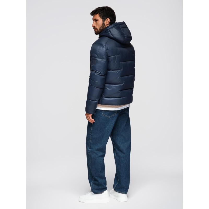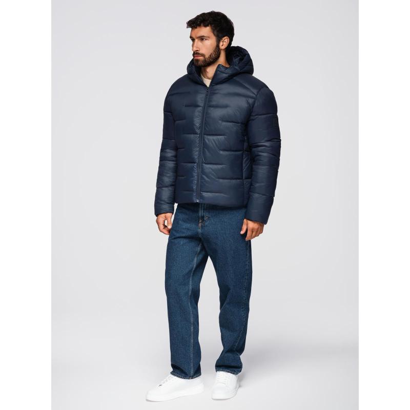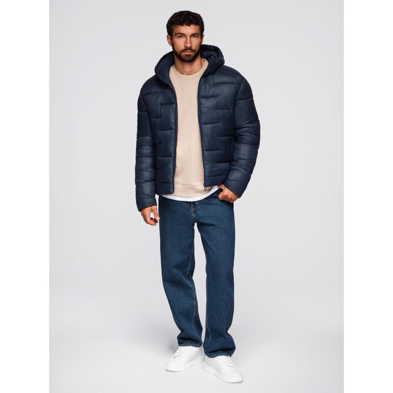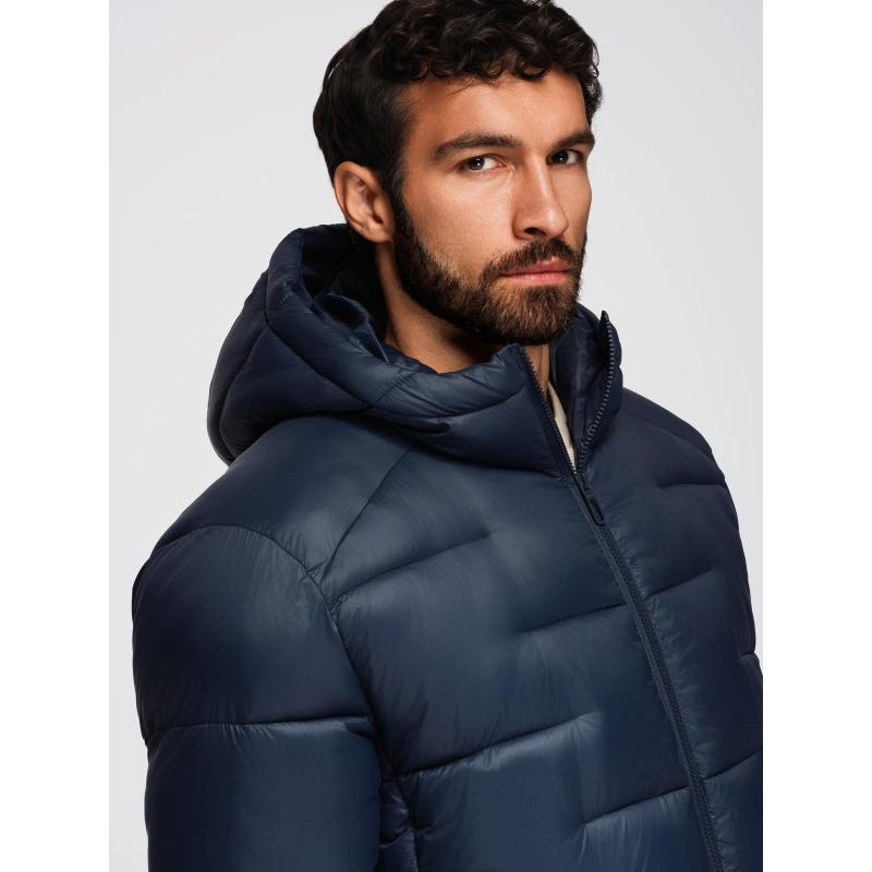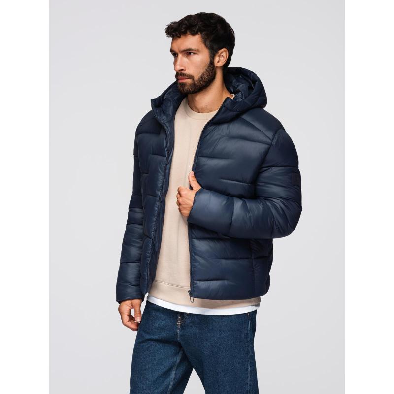 Pánska prešívaná bunda s kapucňou – tmavomodrá V4 OM-JAHP-0235