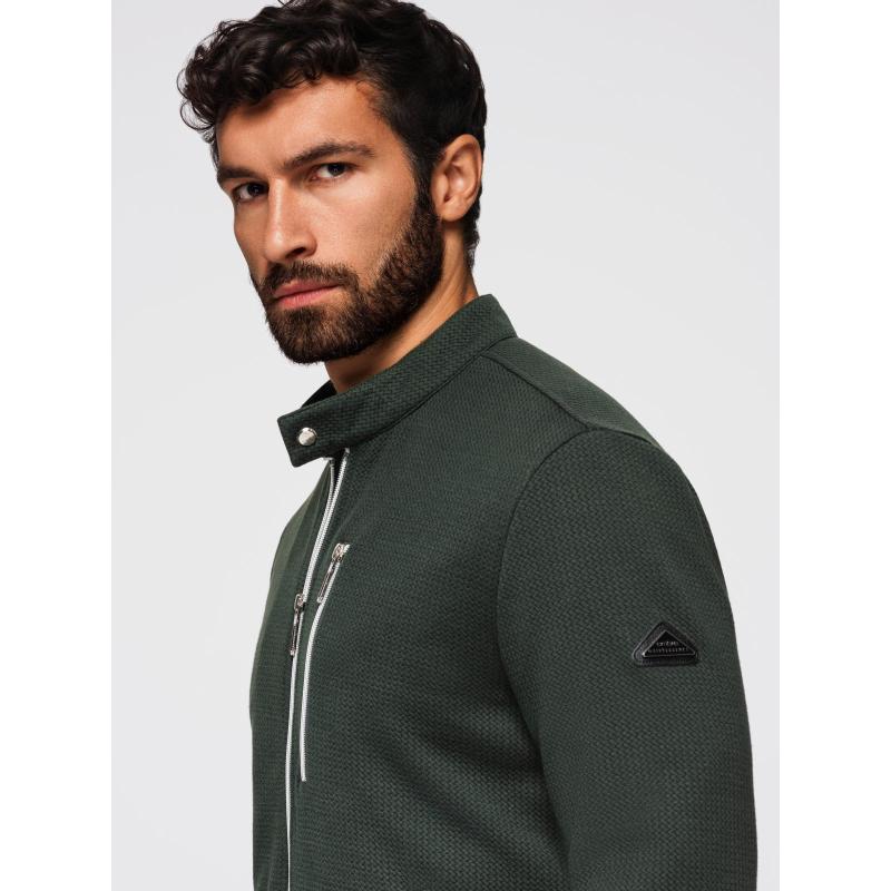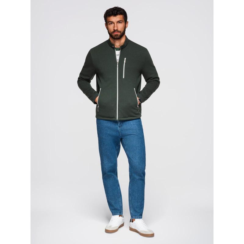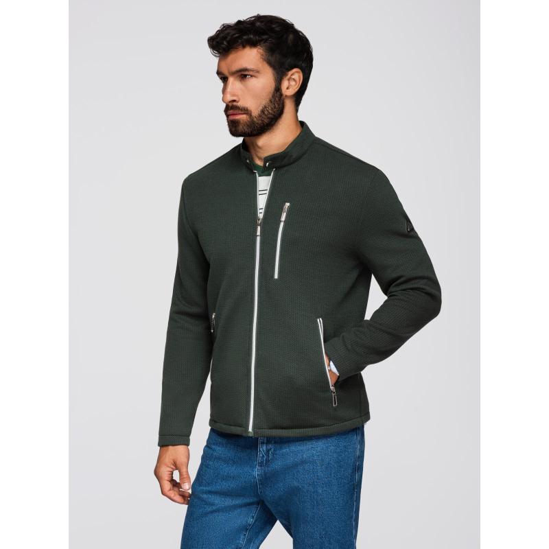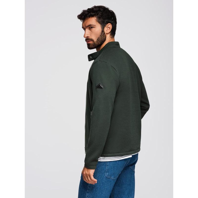 Pánska prešívaná bunda s strihom košele – olivová V2 OM-JALP-0215