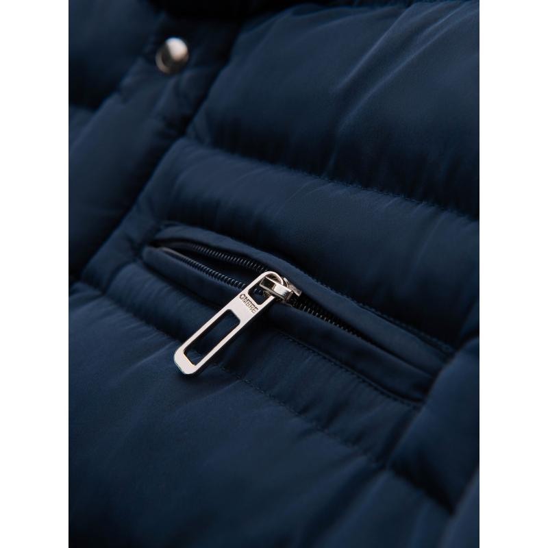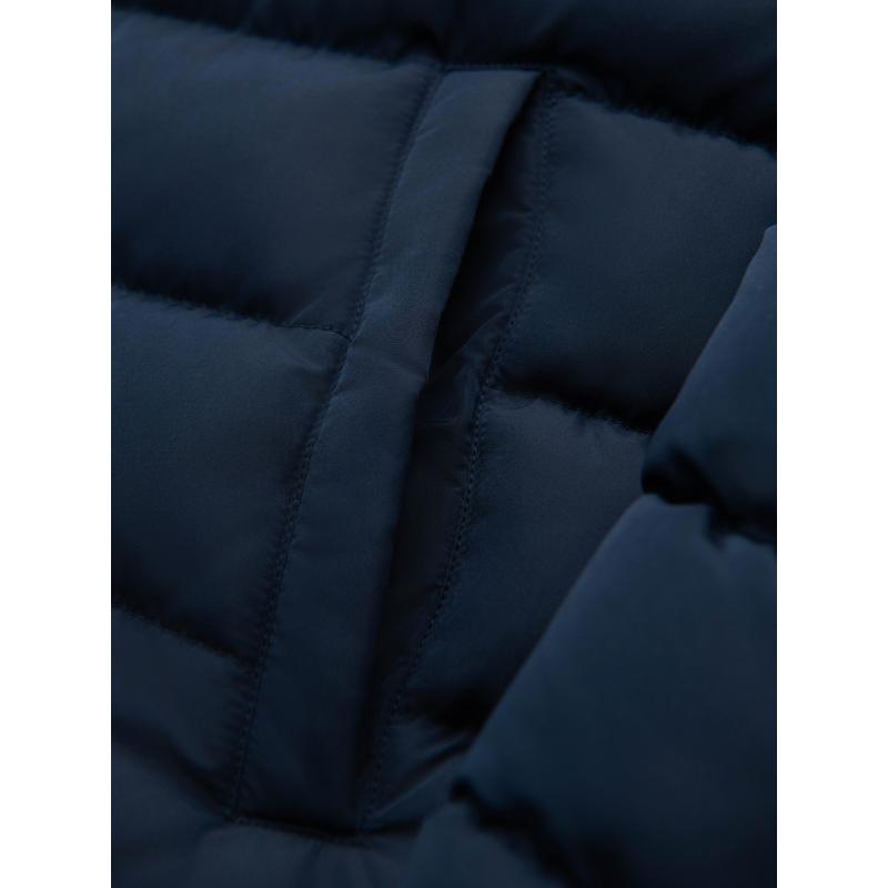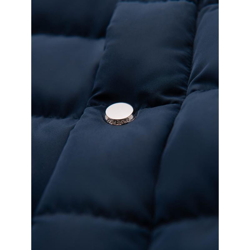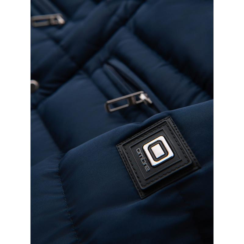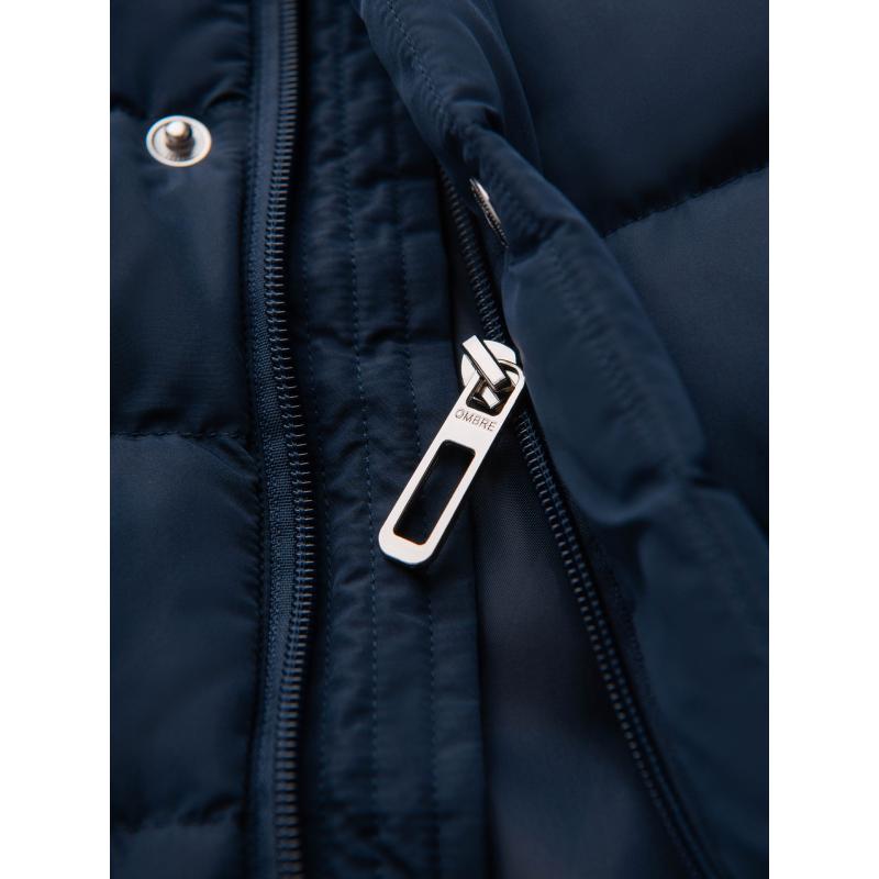 Pánska prešívaná bunda so stojatým golierom a zipsami na hrudi – tmavomodrá V2 OM-JALP-0260