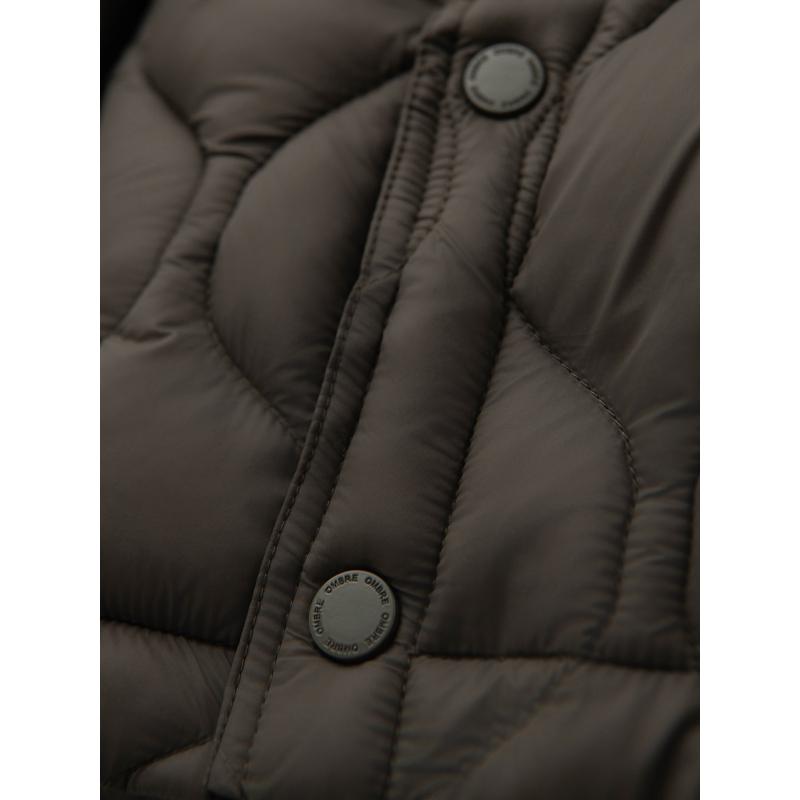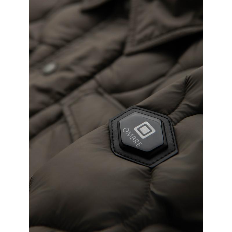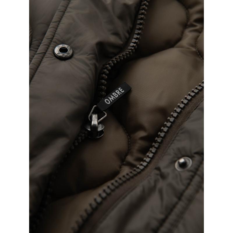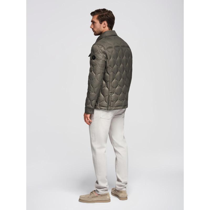 Pánska prešívaná bunda so stojatým golierom a zipsami na hrudi – tmavomodrá V2 OM-JALP-0260