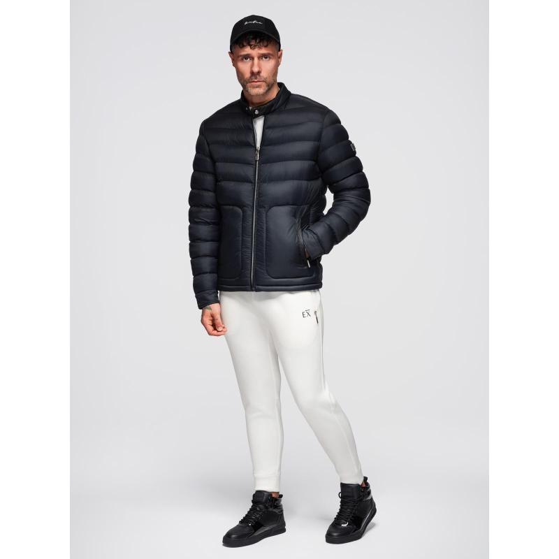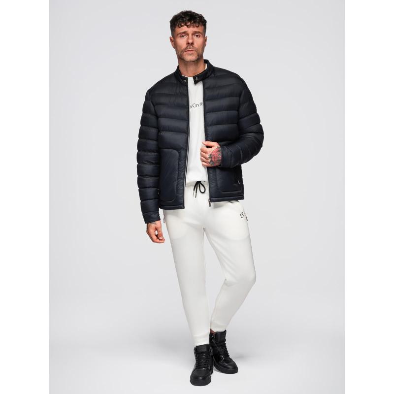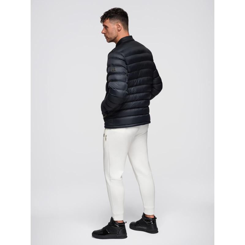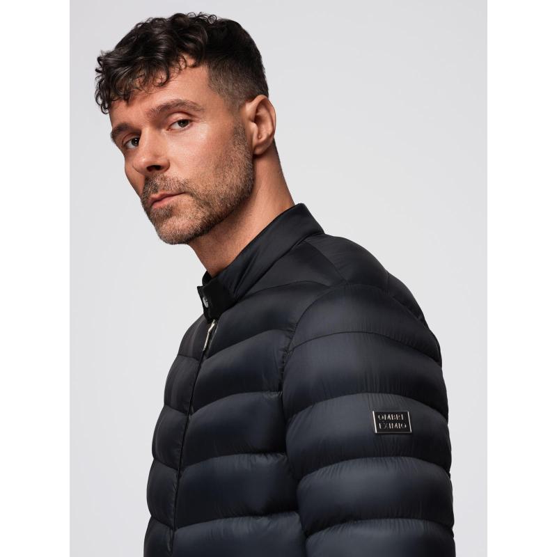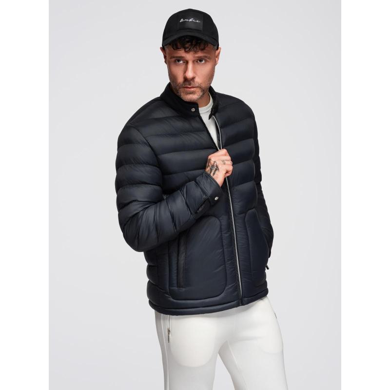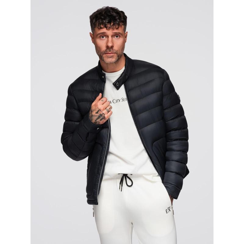 Pánska prešívaná klasická bunda so stojatým golierom – čierna V1 OM-JALP-0261