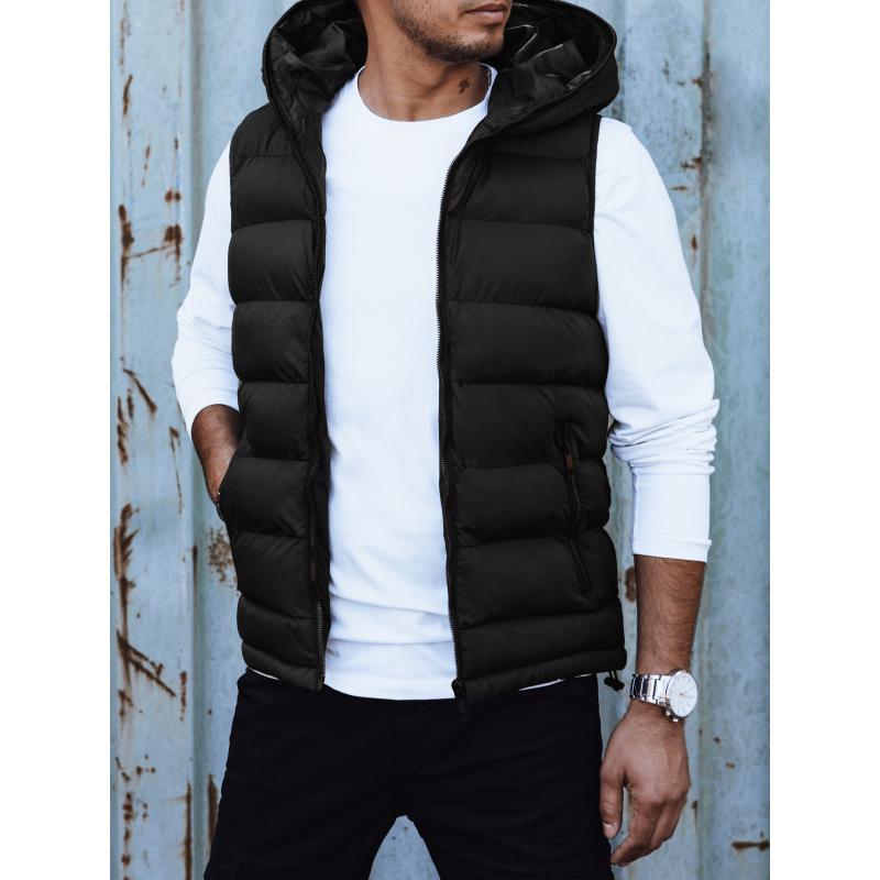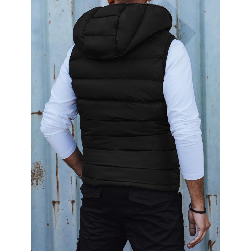 Pánska prešívaná vesta s kapucňou čierna TX4750