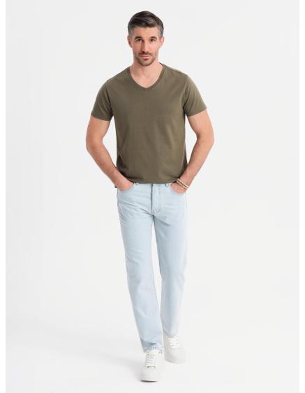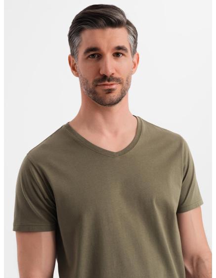 Pánske tričko s výstrihom do V EM-TSBS-0101 olivová