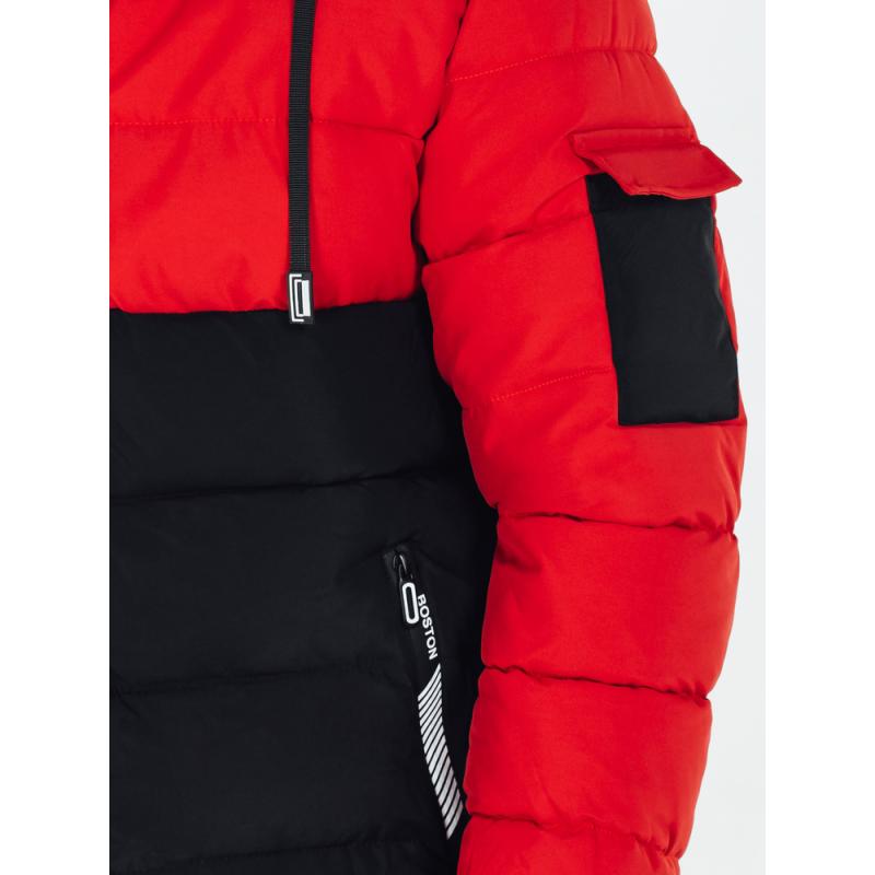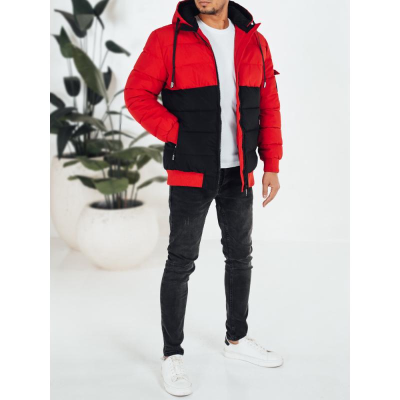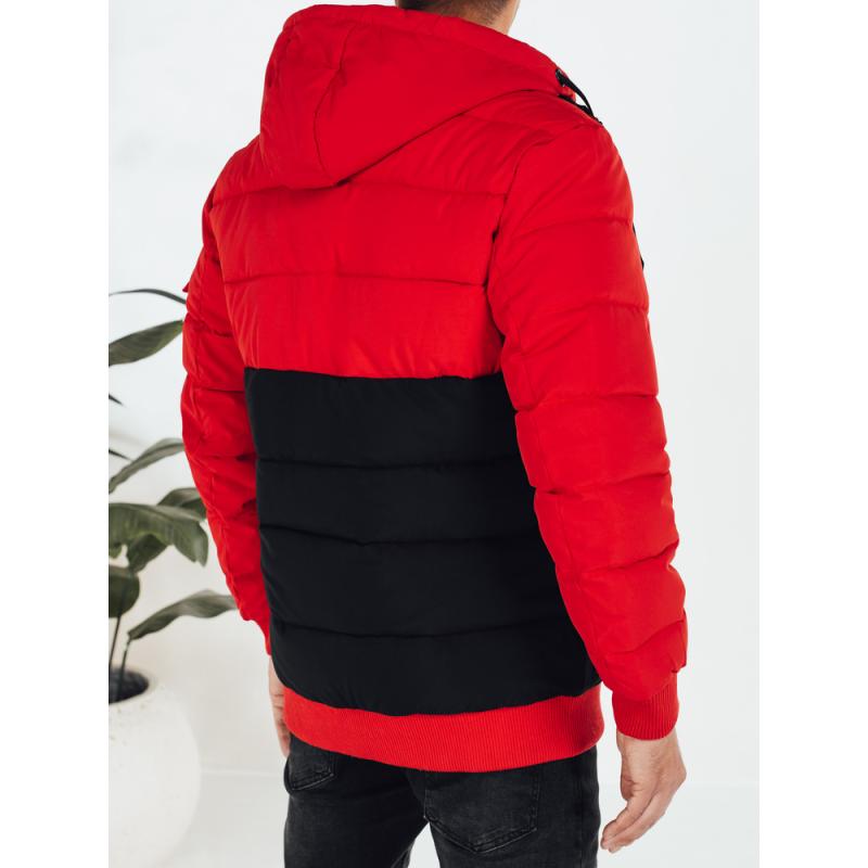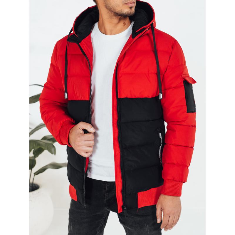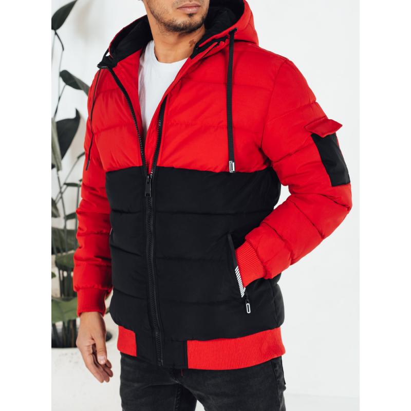 Pánska zimná bunda s kapucňou, čierna a červená