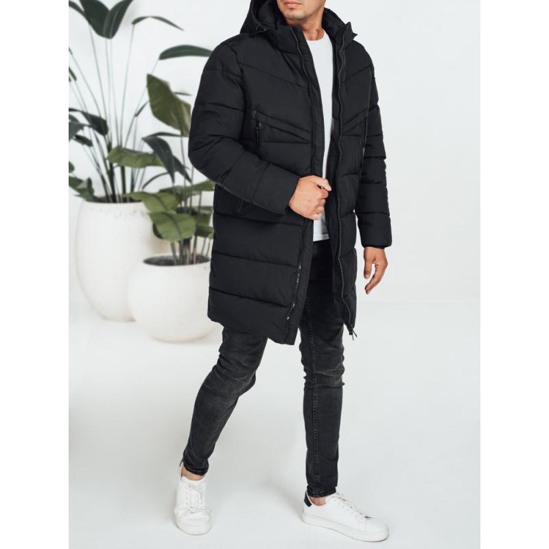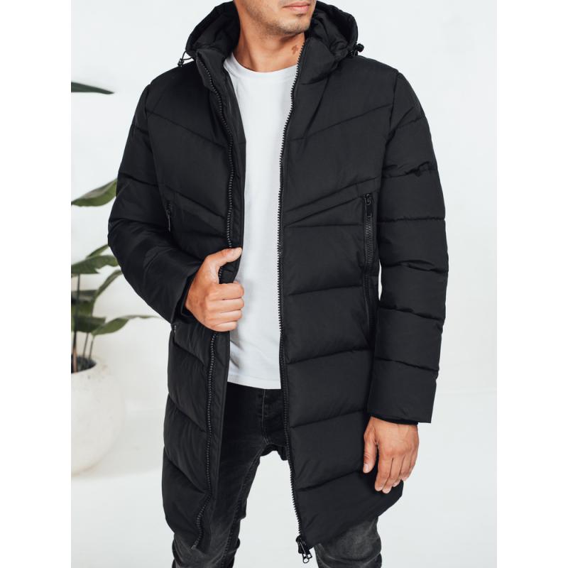 Pánska zimná prešívaná bunda s kapucňou, čierna