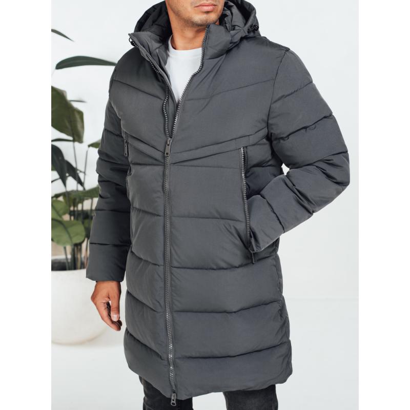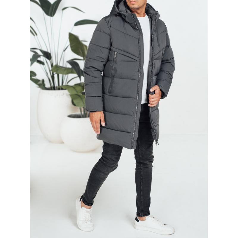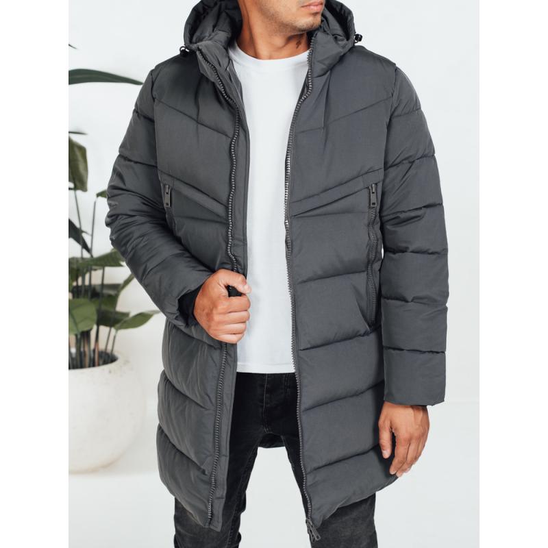 Pánska zimná prešívaná bunda s kapucňou, tmavošedá