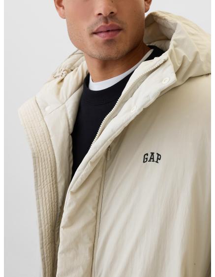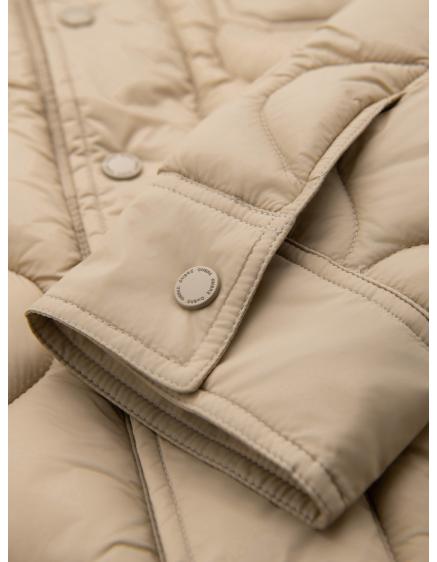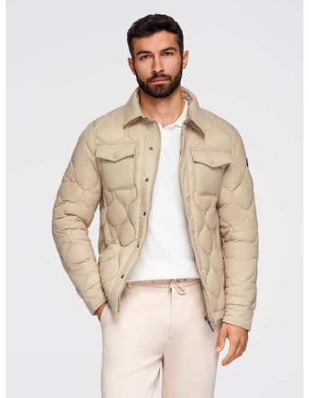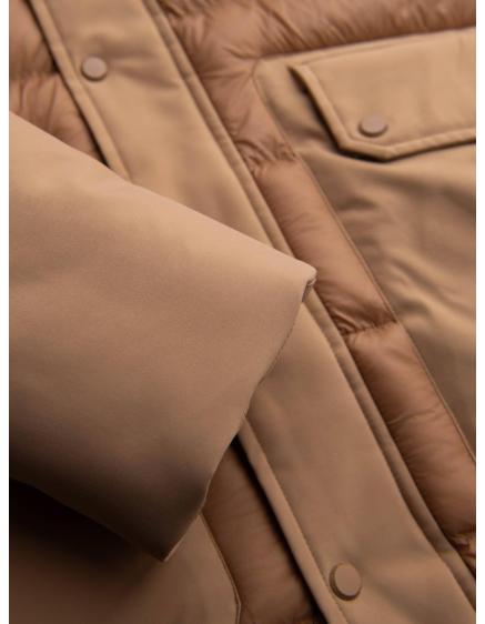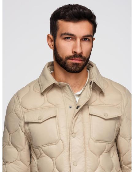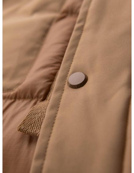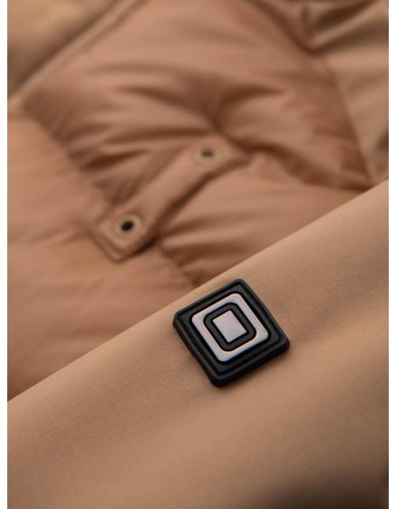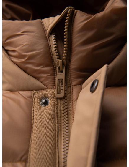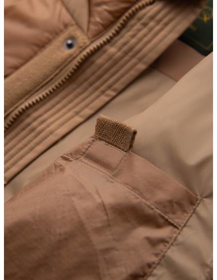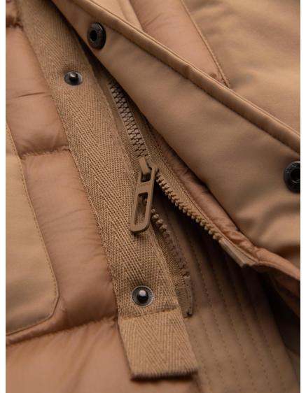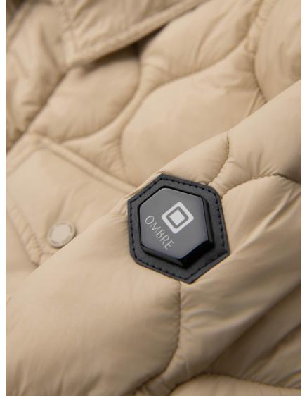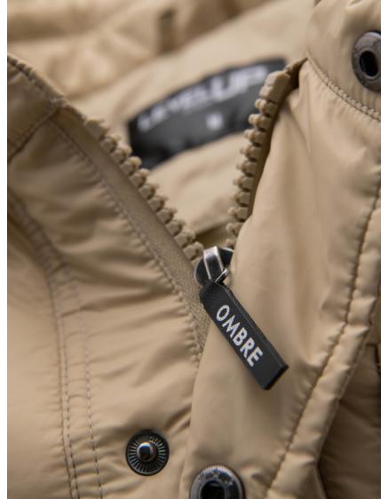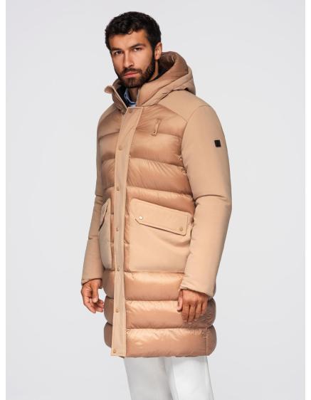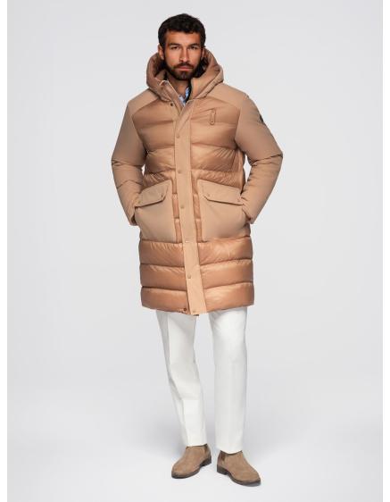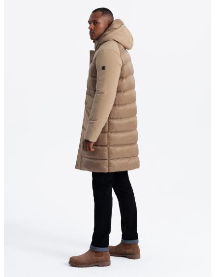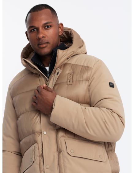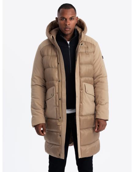 Pánska prešívaná dlhá bunda s odopínateľnou kapucňou - béžová V2