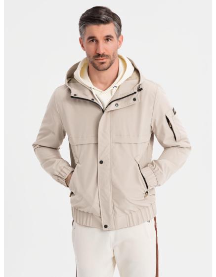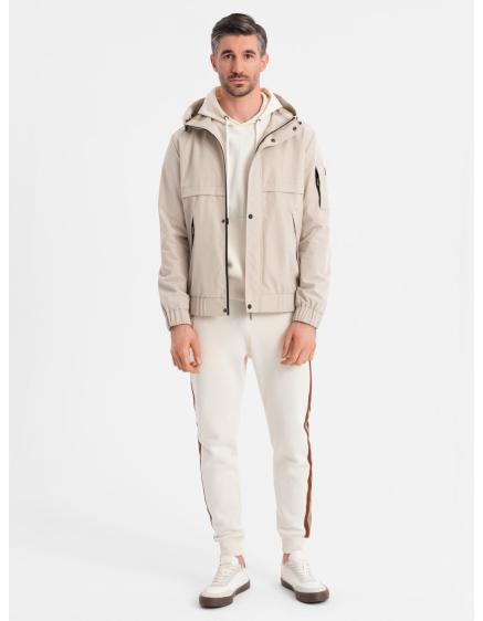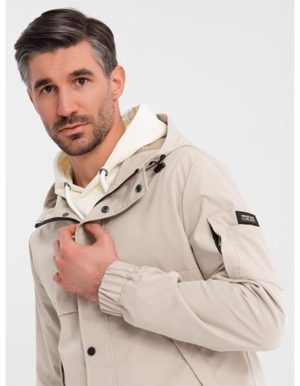 Pánska bunda s kapucňou béžová
