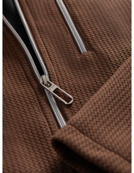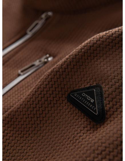 Pánska vzorovaná páperová bunda s kapucňou hnedá