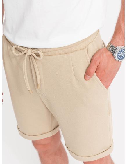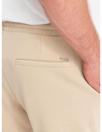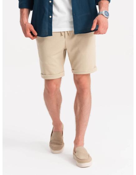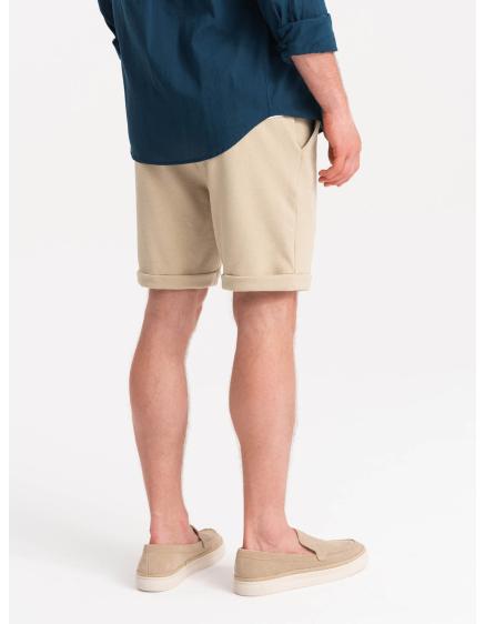 Pánske chinos šortky s kontrastným pásom - pieskové V10 W421
