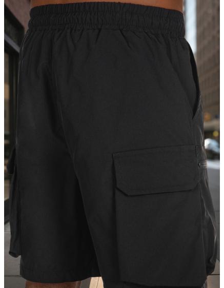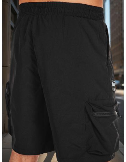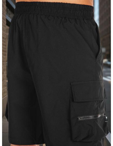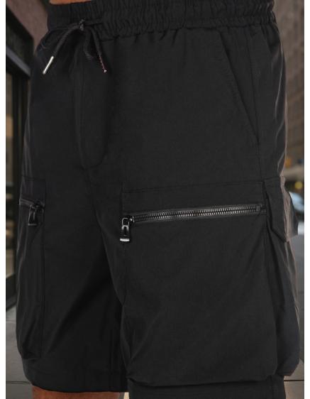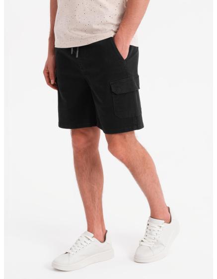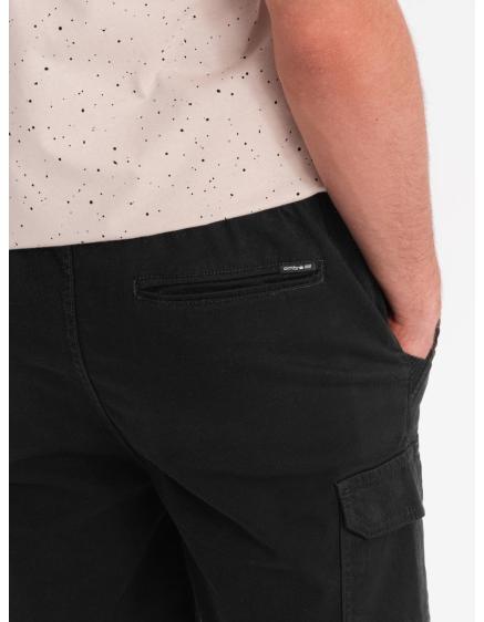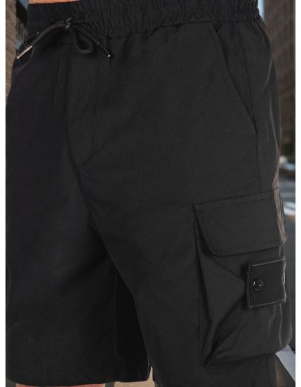 Jednofarebné pánske šortky s cargo vreckami čierne