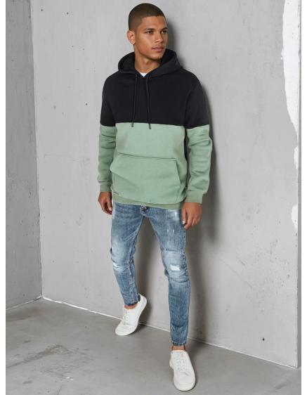 Pánska mikina basic s kapucňou v modro-čiernych prúžkoch