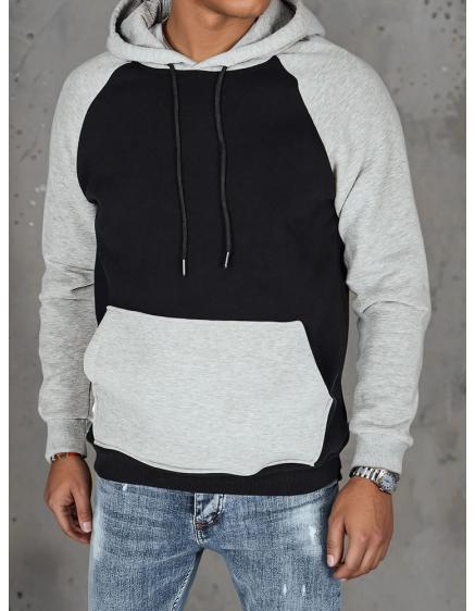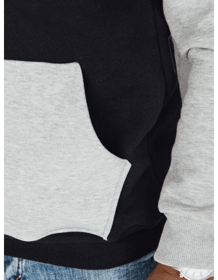 Pánska mikina basic s kapucňou v bielo-čiernych prúžkoch