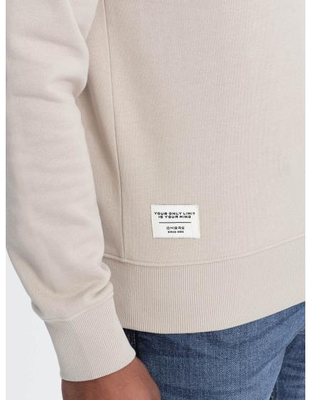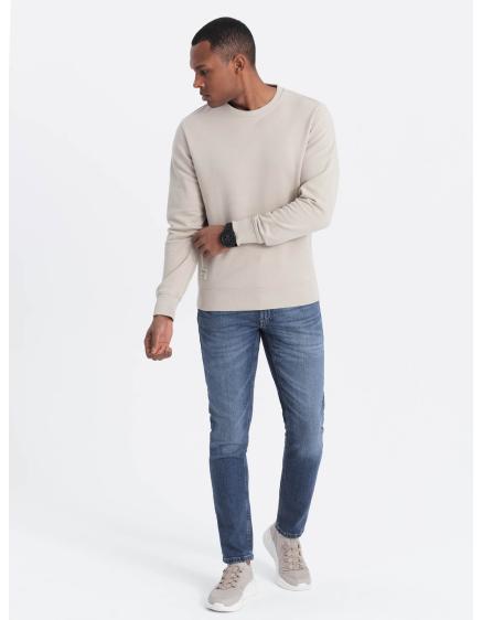 Pánska mikina BASIC s okrúhlym výstrihom svetlo béžová
