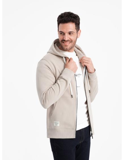 Pánska bavlnená mikina BASIC na zips béžová