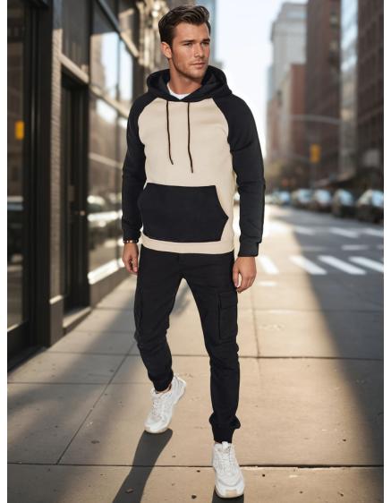 Pánska mikina basic s kapucňou béžová