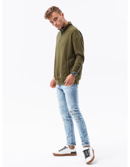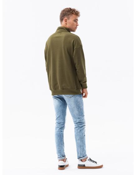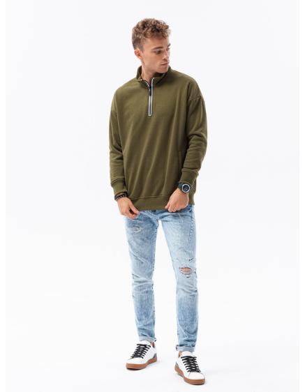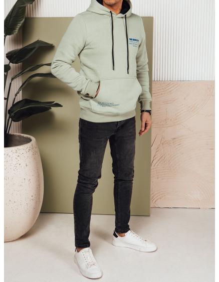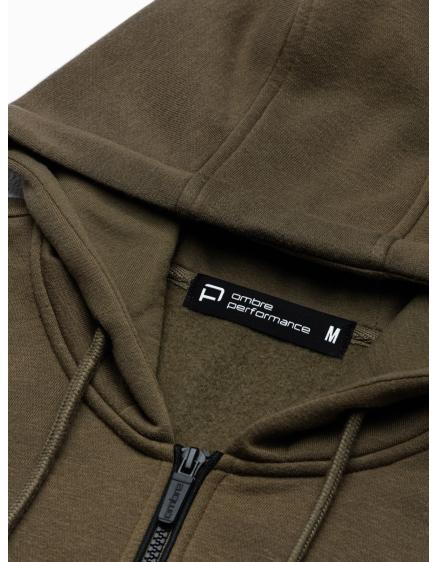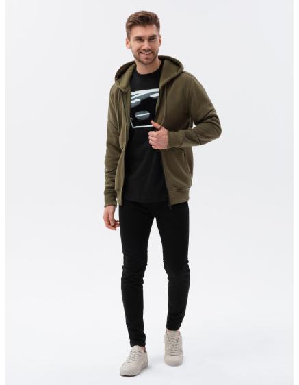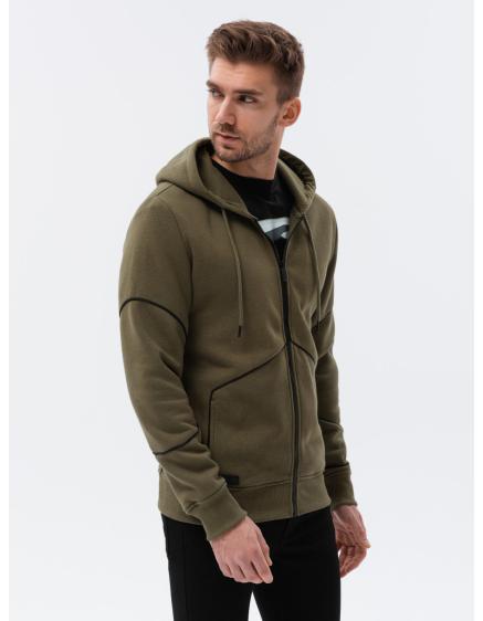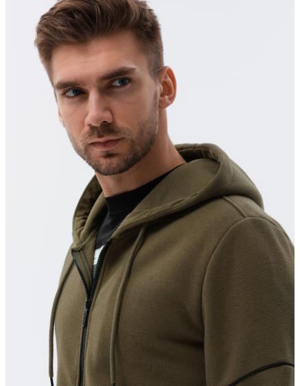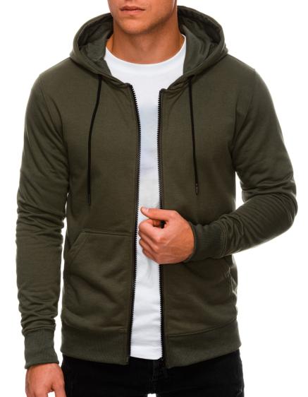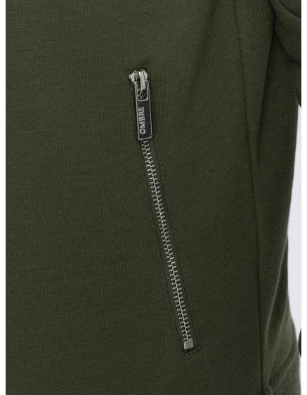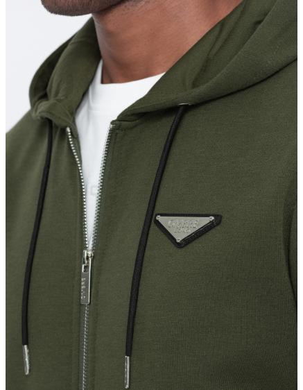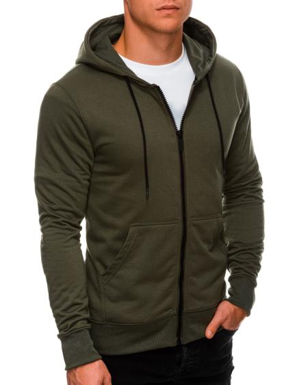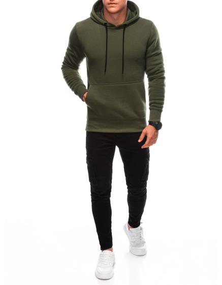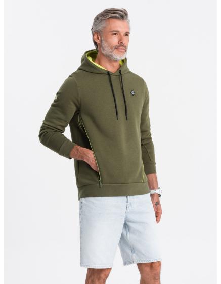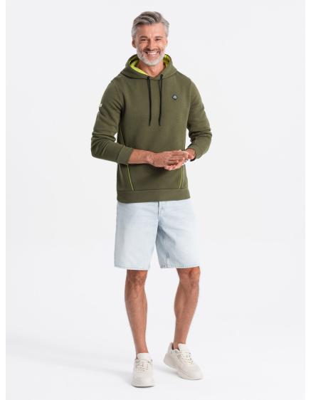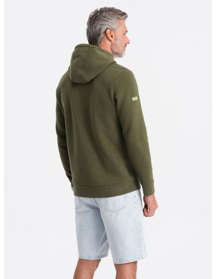 Pánska bavlnená mikina s kapucňou BASIC klokanka olivová