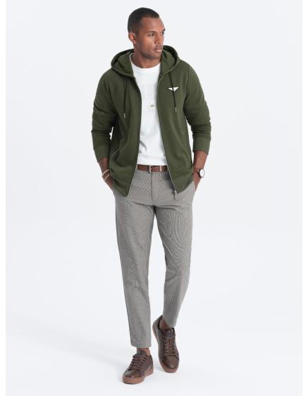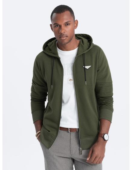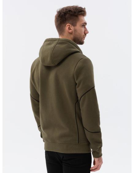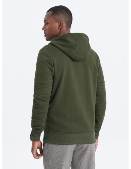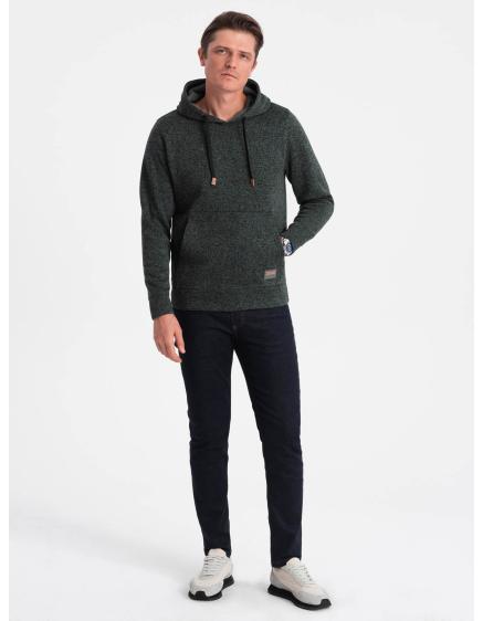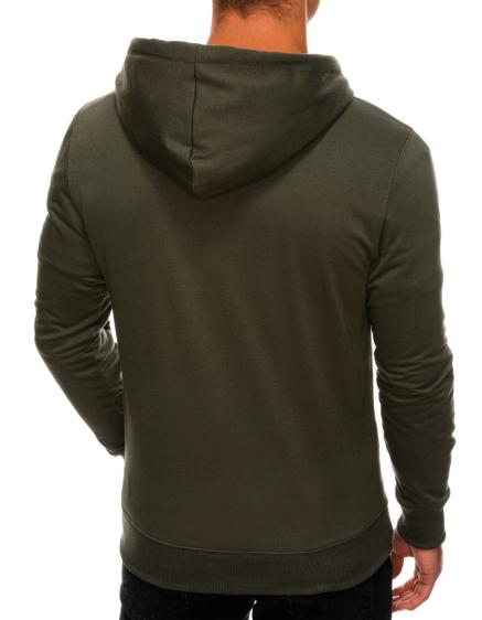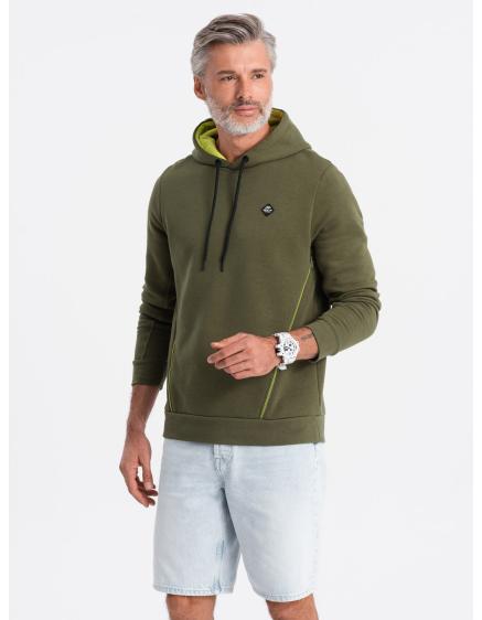 Klasická pánska mikina s kapucňou s nápisom - tmavo olivová