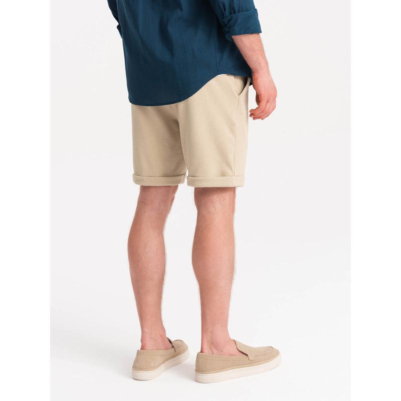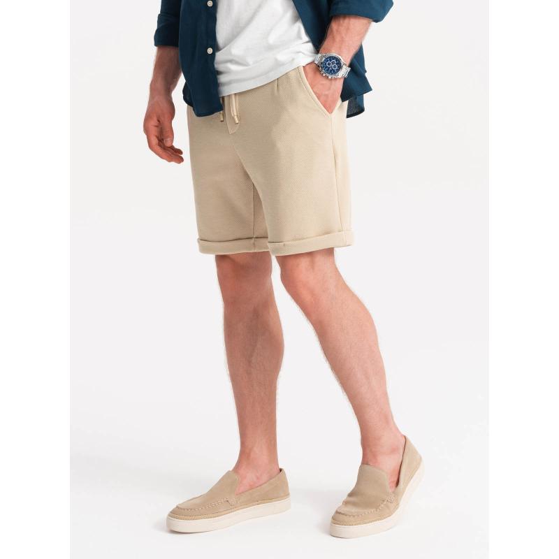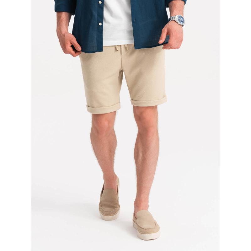 Pánske pletené šortky s elastickým pásom - pieskové V3 OM-SRCS-0107