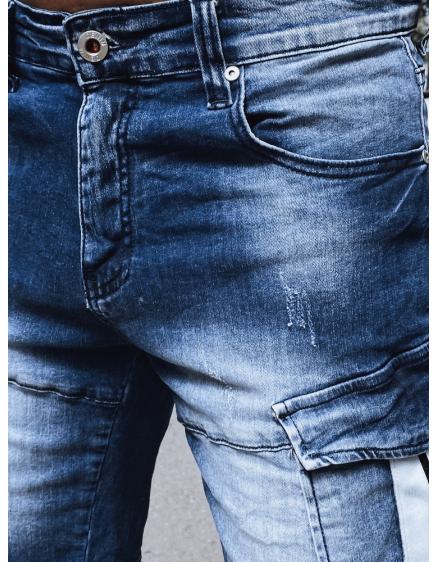 Pánske chinos šortky s džínsovým lemom tyrkysové V4 W421