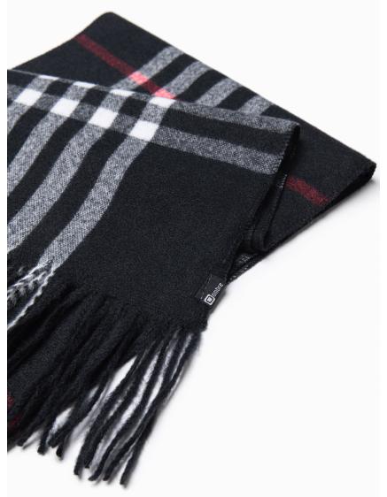 Pánsky jednofarebný pletený rebrovaný šál - čierny