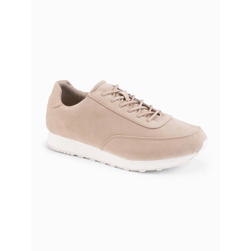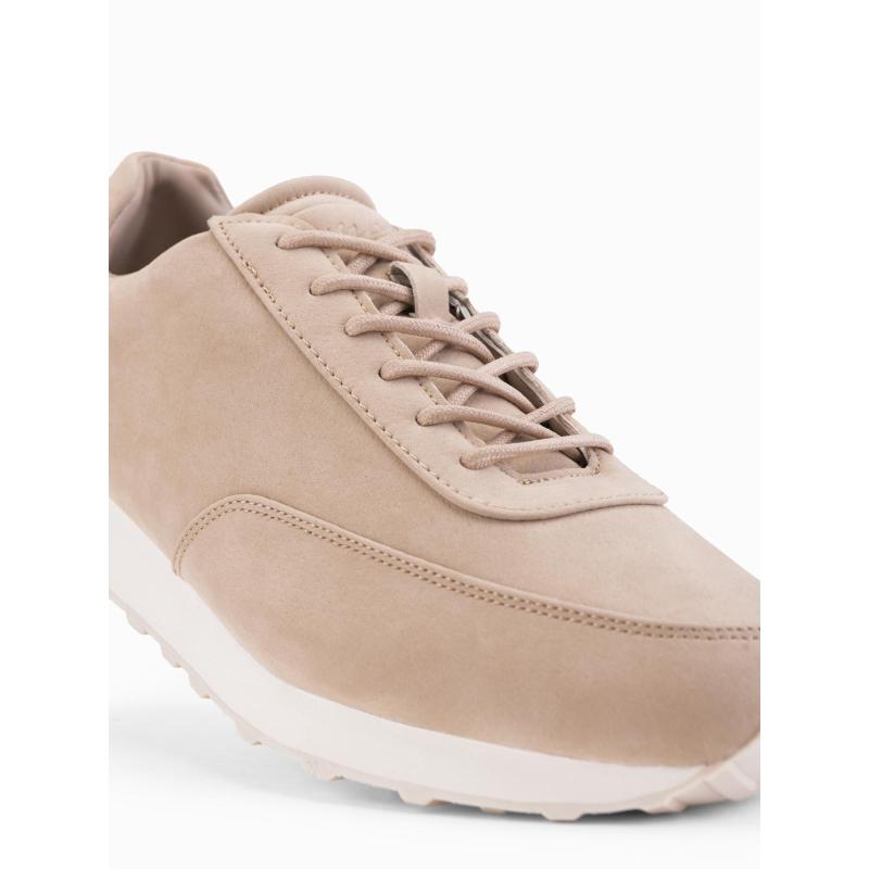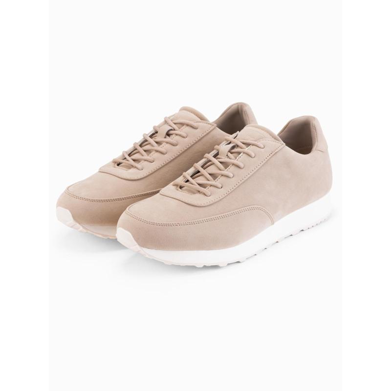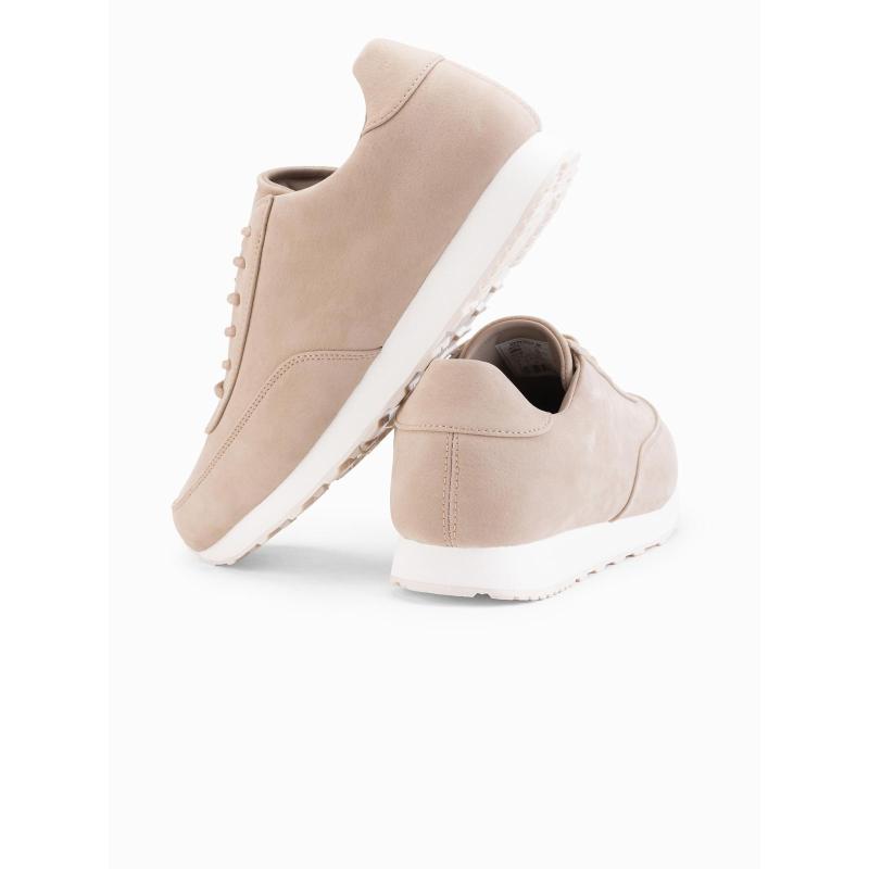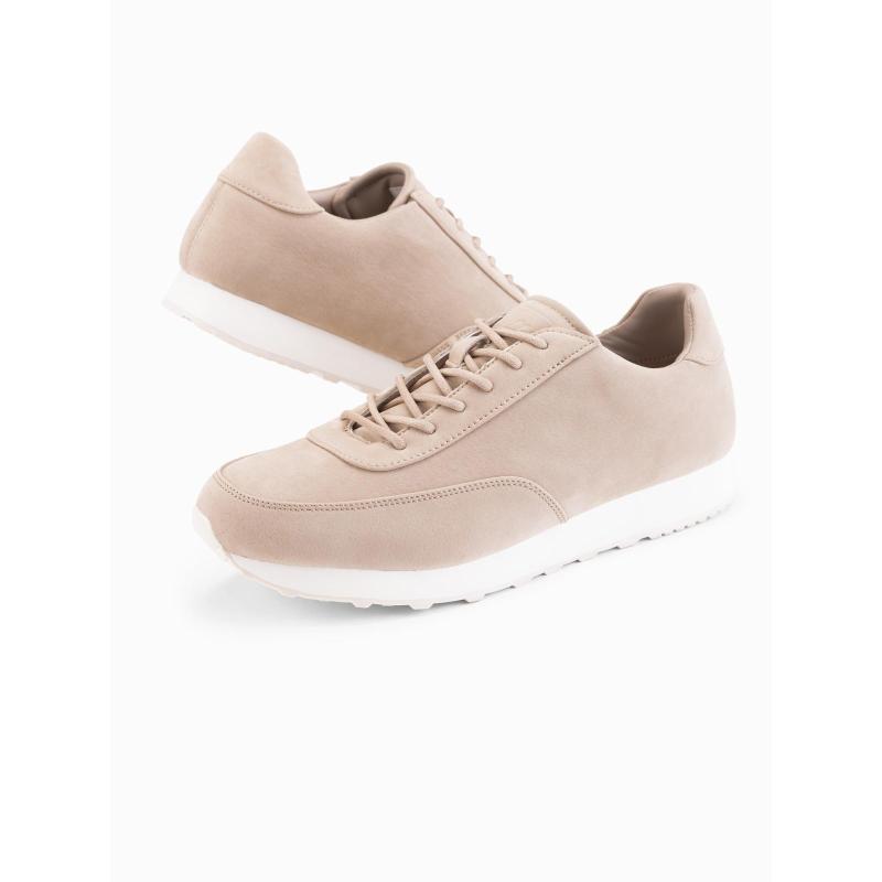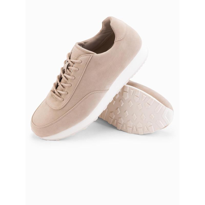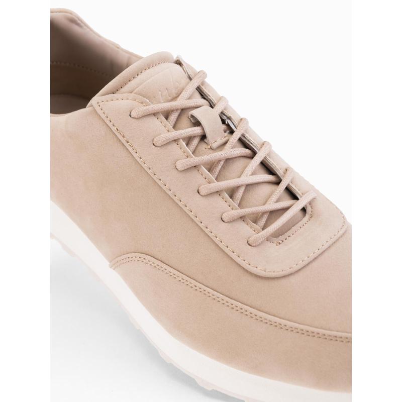 Pánske športové topánky z eko kože so semišovým povrchom – piesková V4 OM-FOCS-0161