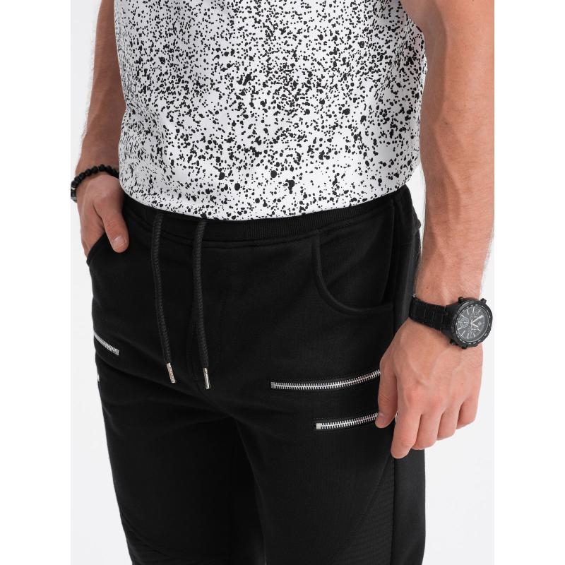 Pánske tepláky s ozdobnými zipsami V6 OM-PASK-22FW-012 čierne sú povinnou výbavou každého šatníka. Pravdepodobne už nejaké doma máte, ale pravdou je, že týchto