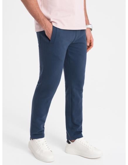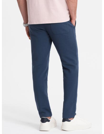 Pánske džínsové tepláky s asymetrickým prešívaním - modré