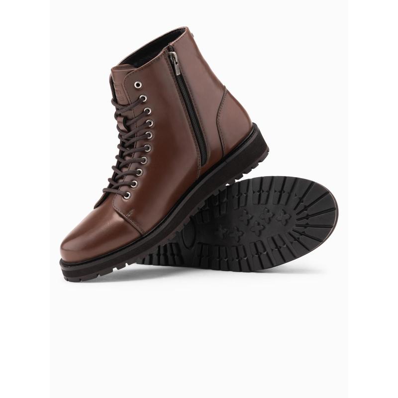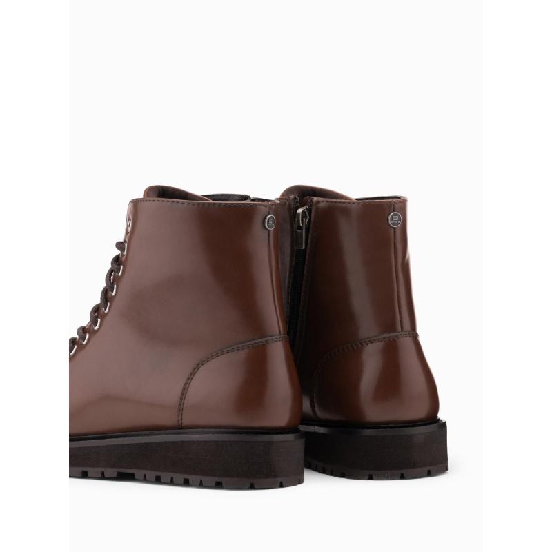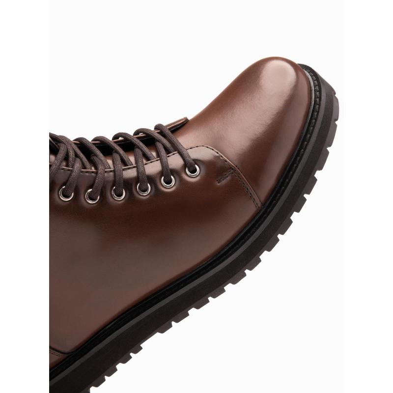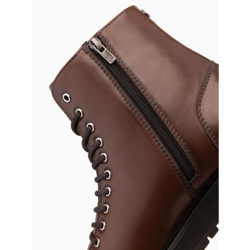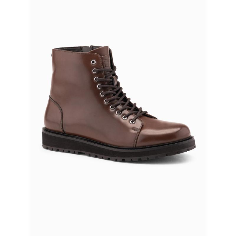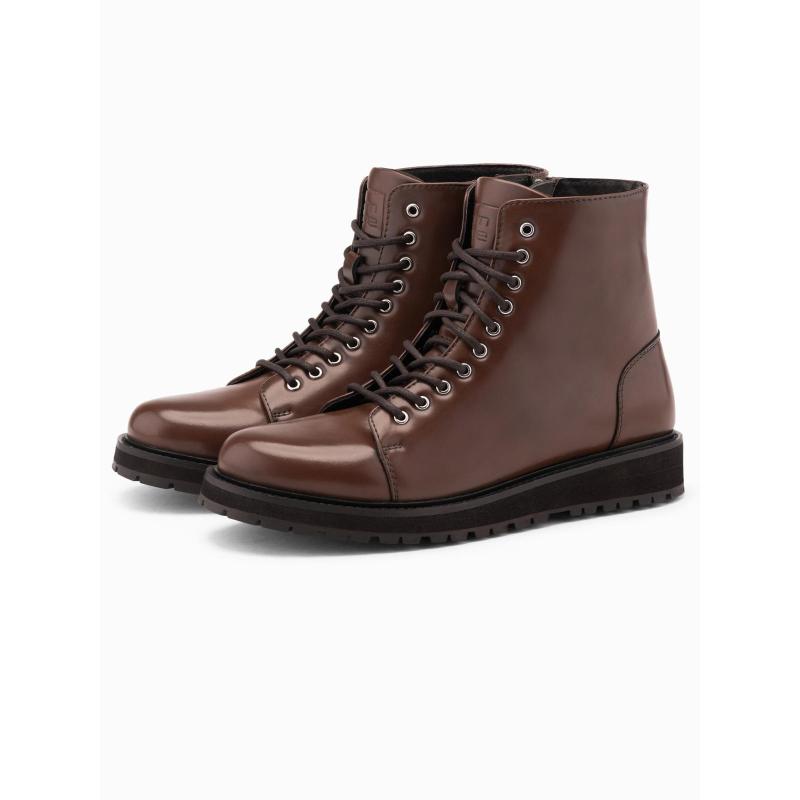 Pánske topánky s vysokým zvrškom z lesklej eko kože – tmavohnedé V2 OM-FOBO-0175
